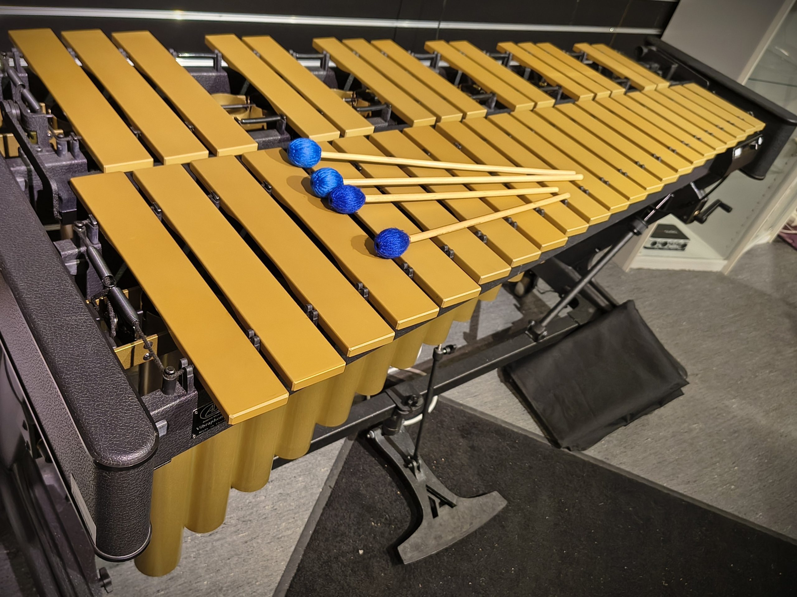 Vibrafon med slagplattor i aluminium och Adams Apex ställning med justerbar höjd.