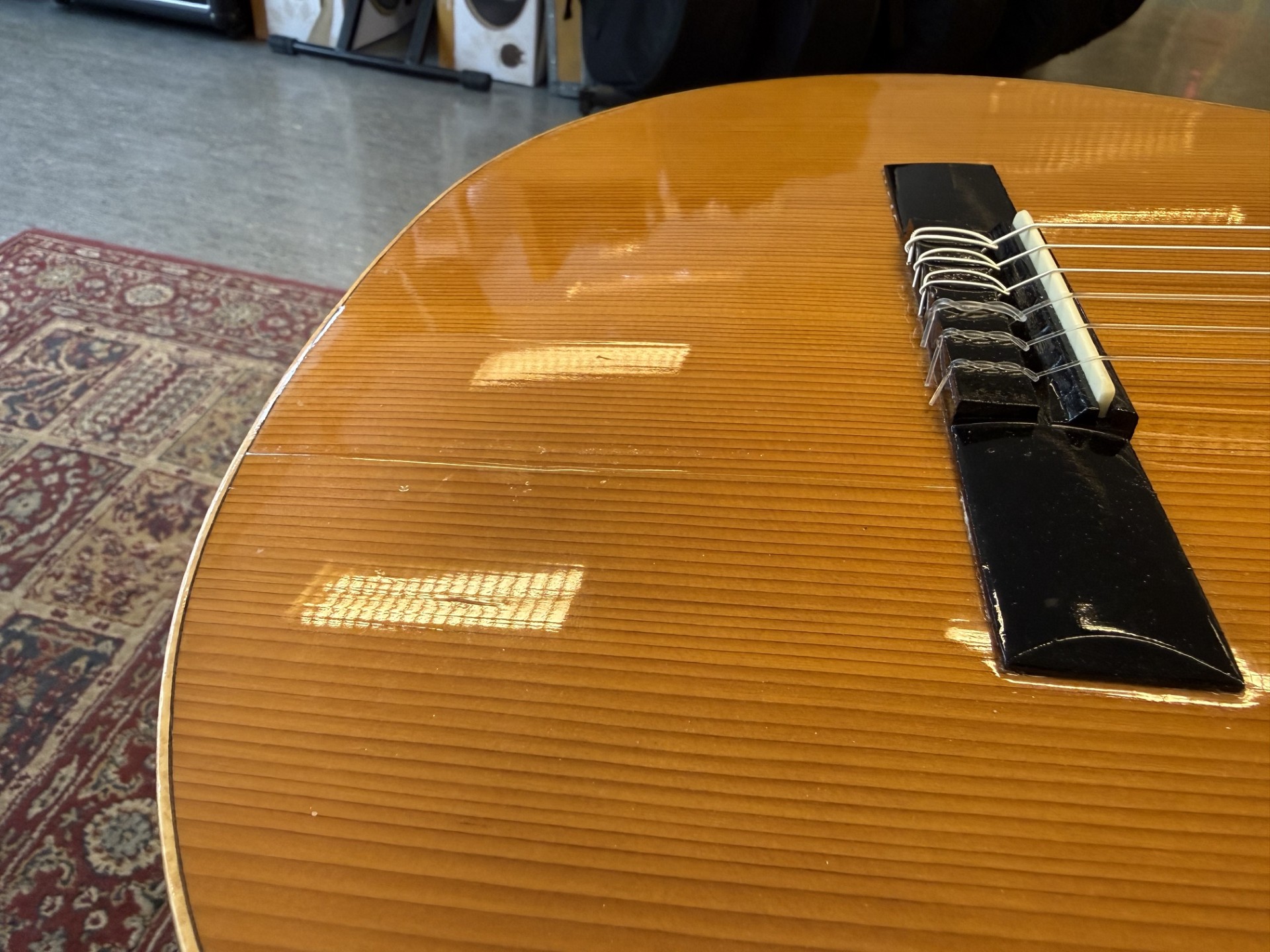 Några gamla torrsprickor finns men annars i bra skick och den låter väldigt bra!