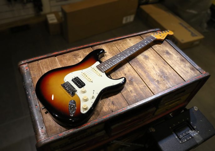 Nyinkommen mycket fin begagnad Fender Stratocaster American Ultra HSS tillverkad 2023 i Corona Californien.