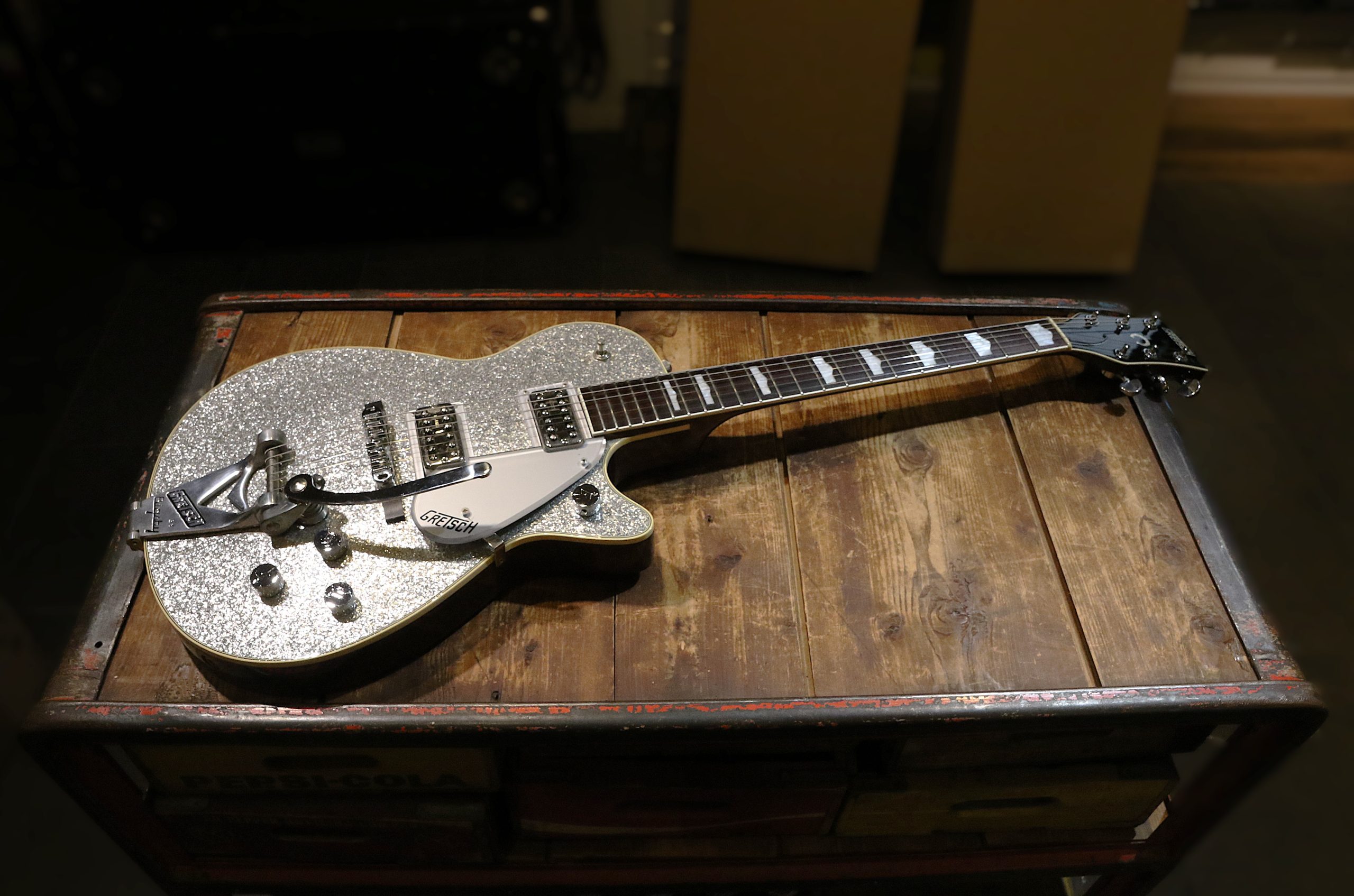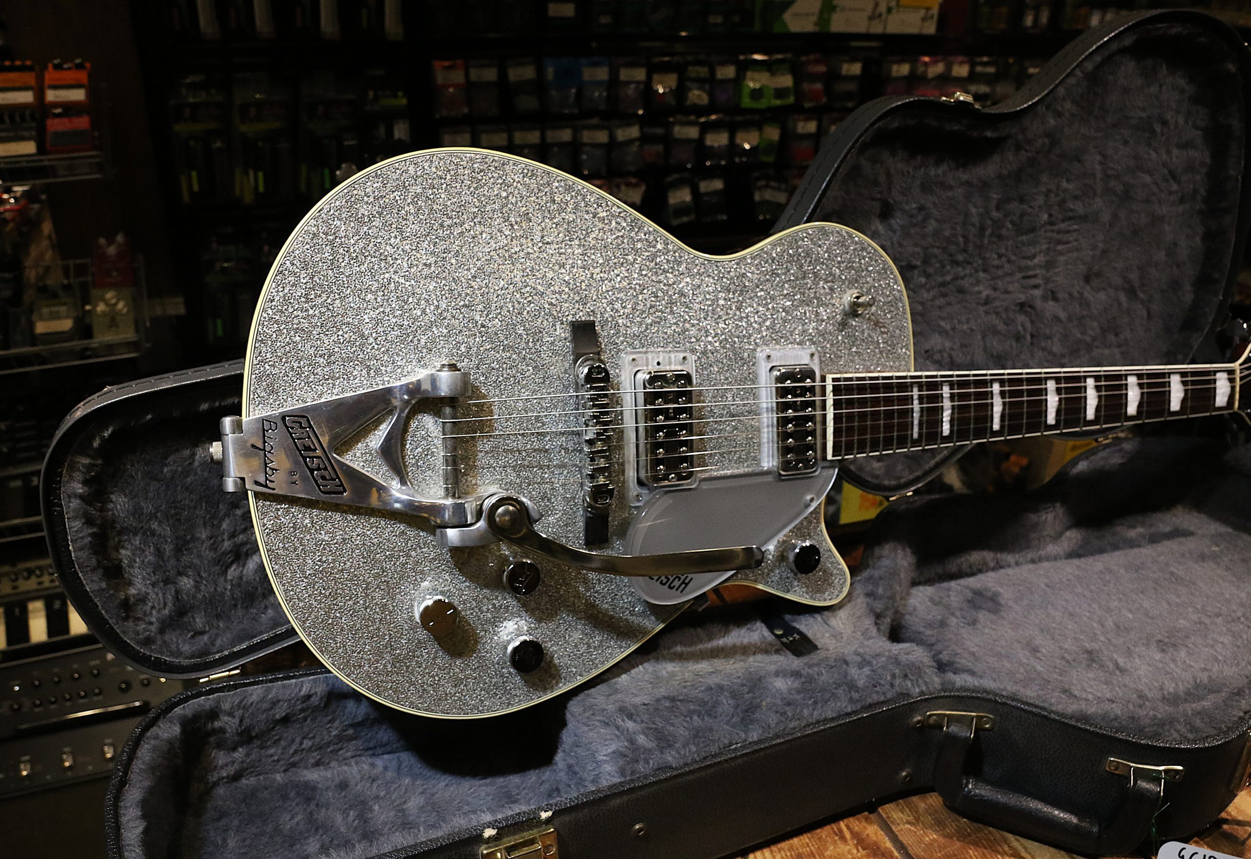 Nyinkommen mycket fin begagnad Gretsch G6129T Silver Sparkle Jet.