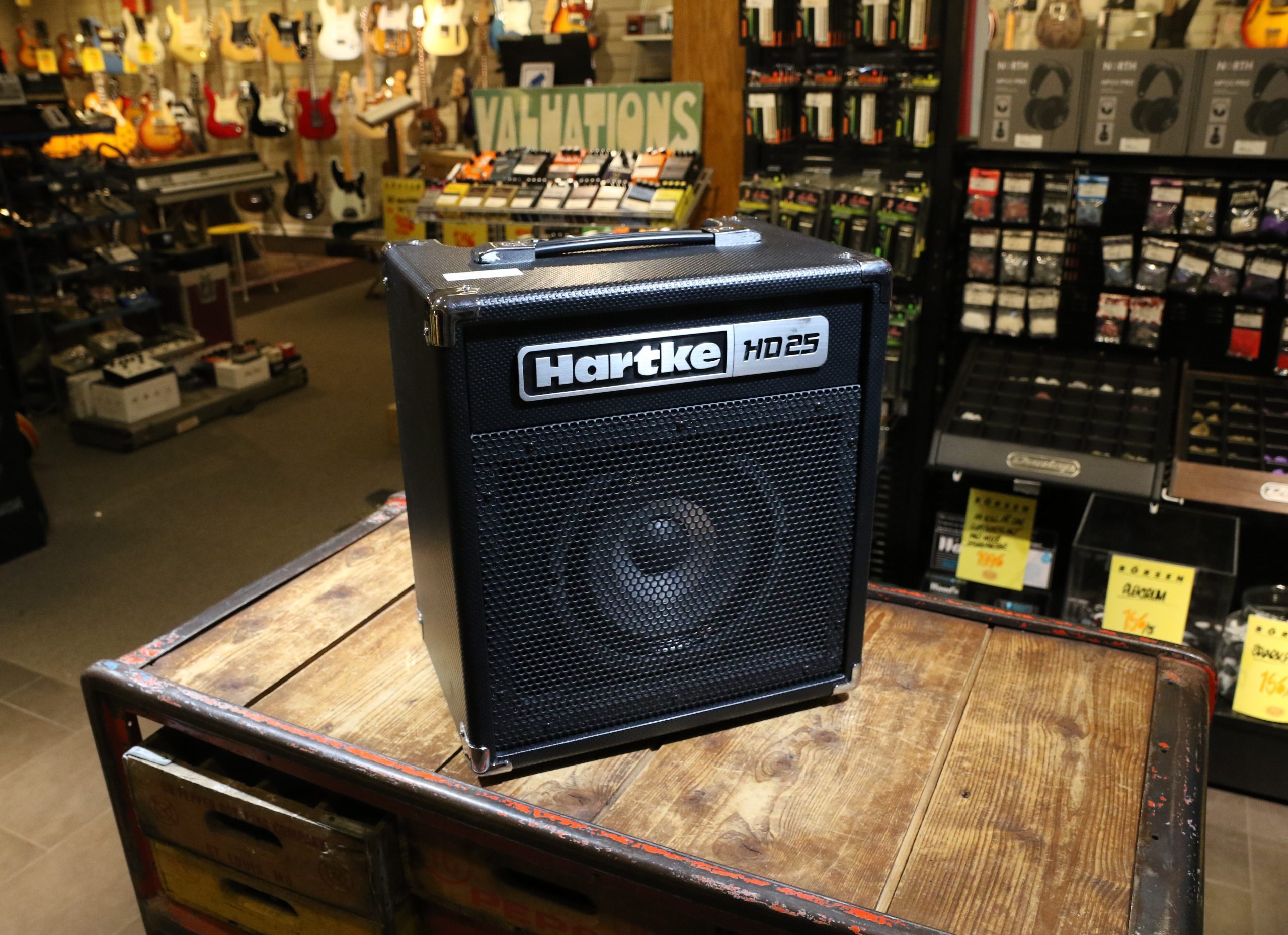 Nu har vi fått in en lite praktik basförstärkare på 25 Watt Hartke HD25.