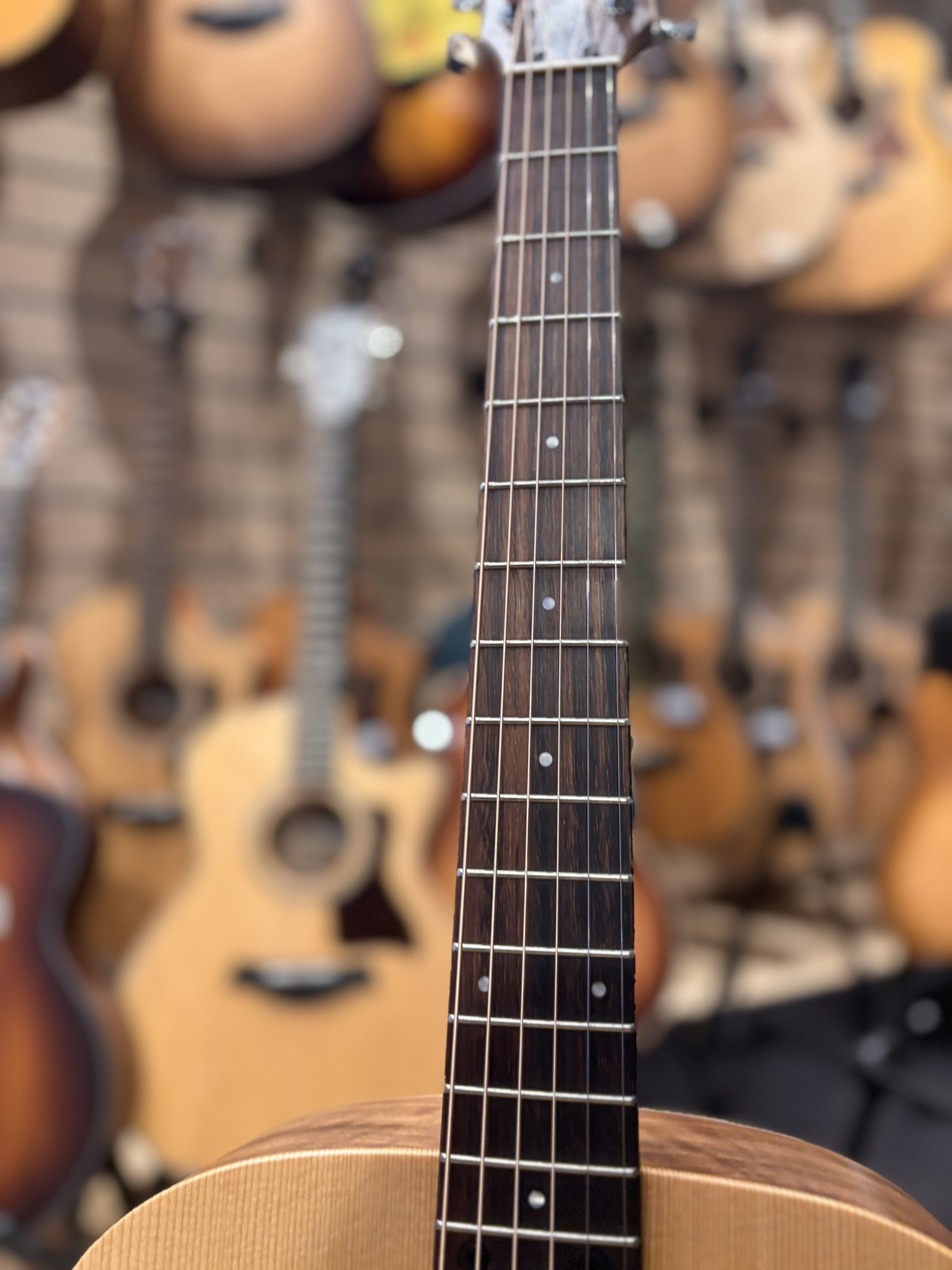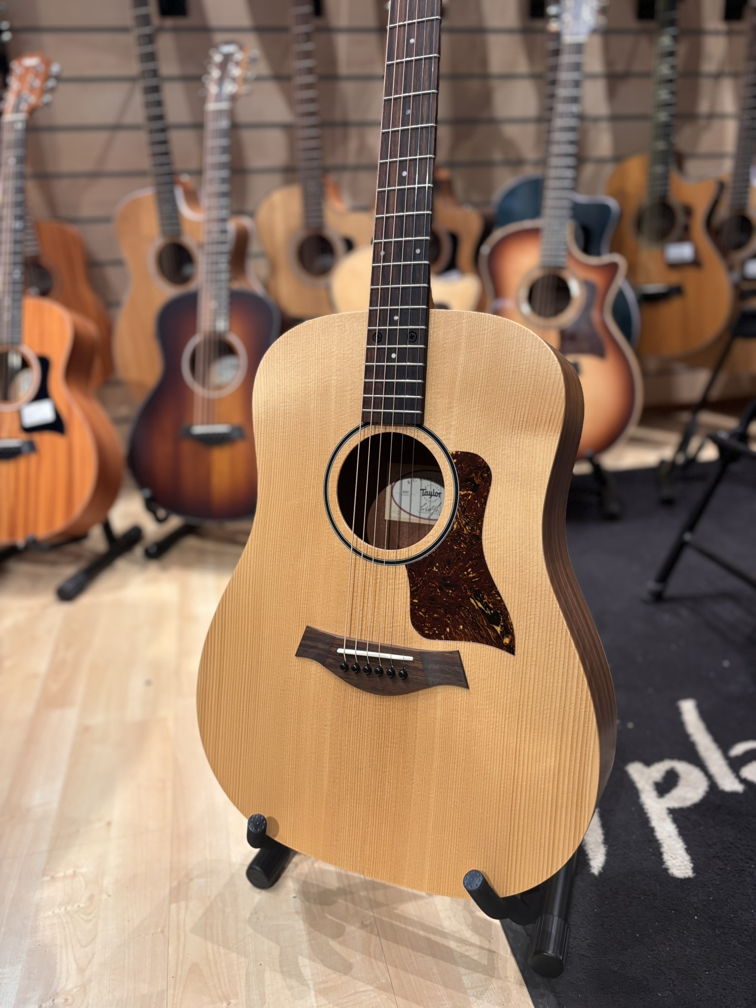 Typiskt Taylor-ljud – klart, balanserat och lättspelat. Perfekt för singer-songwriter, ackordspel eller som rese-/soffgitarr.