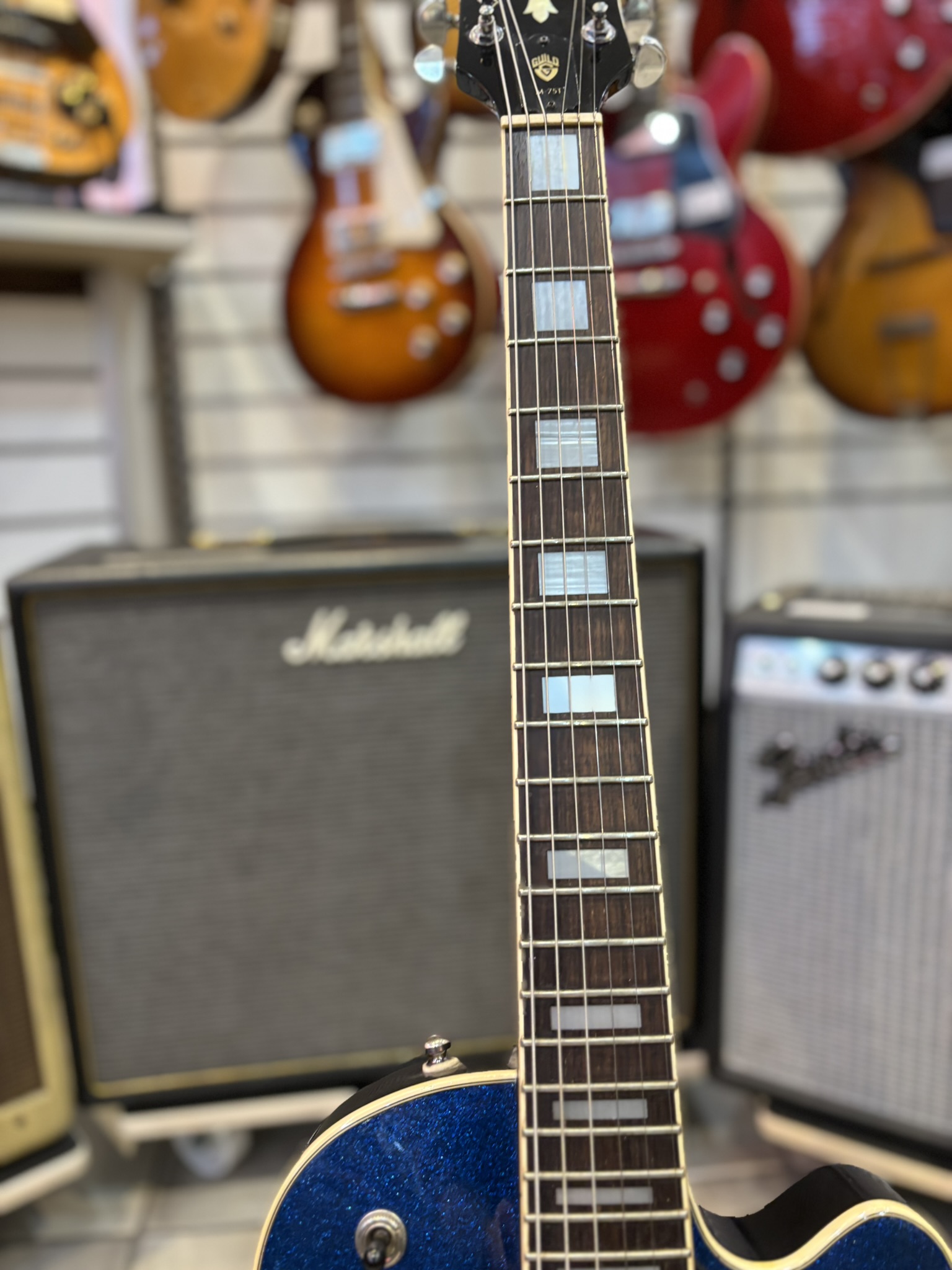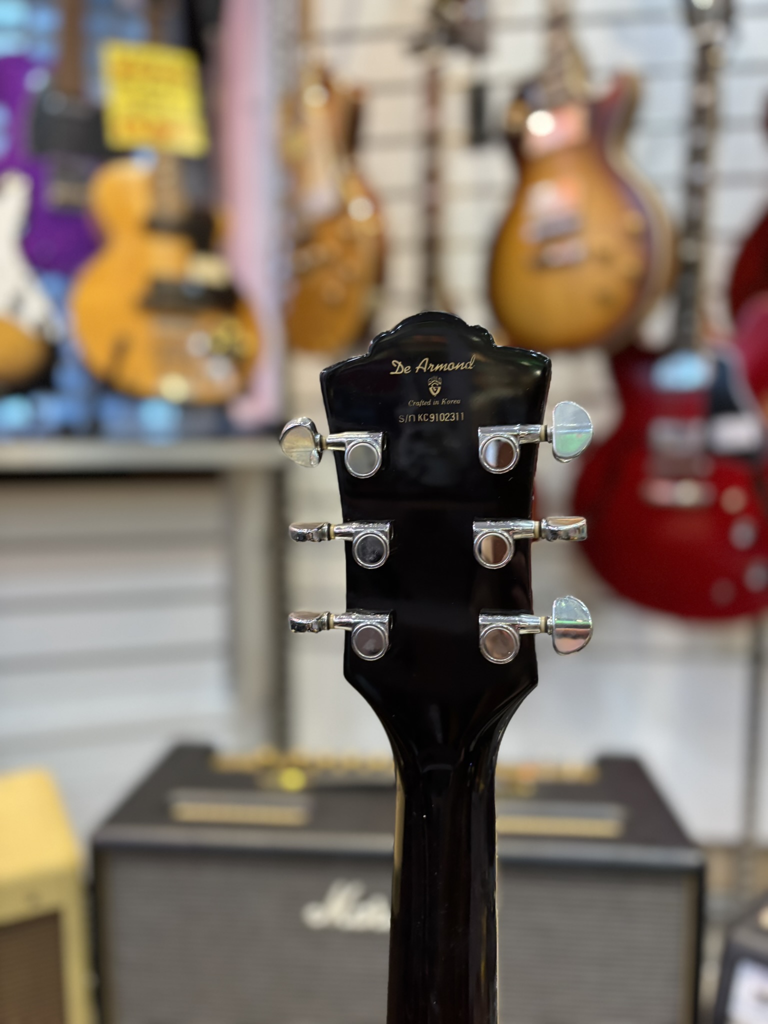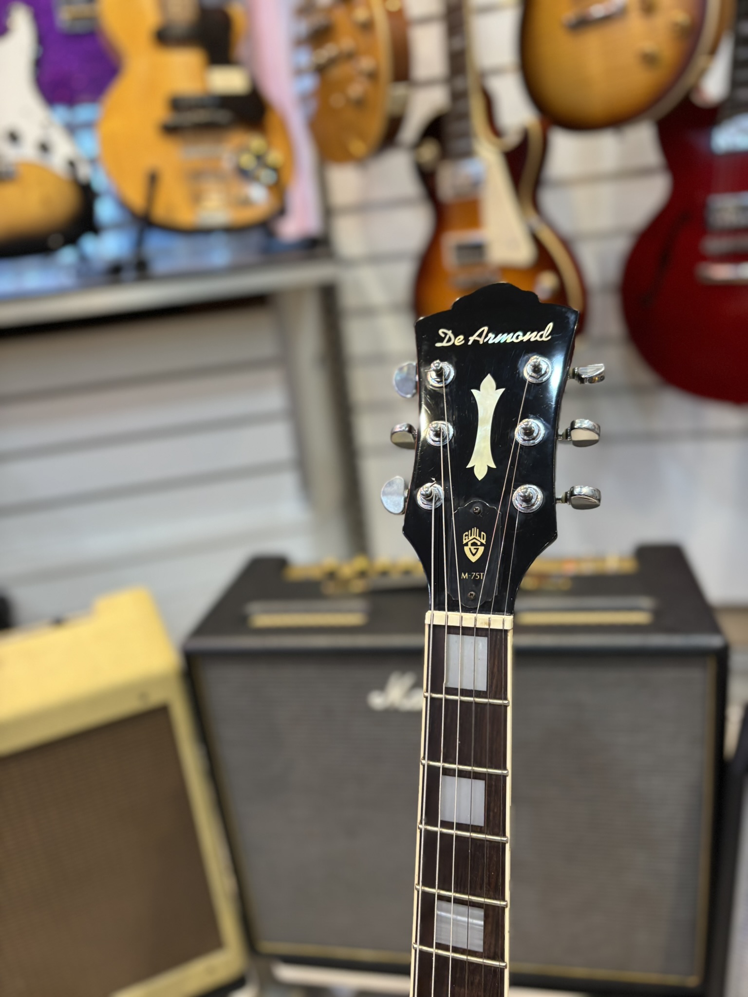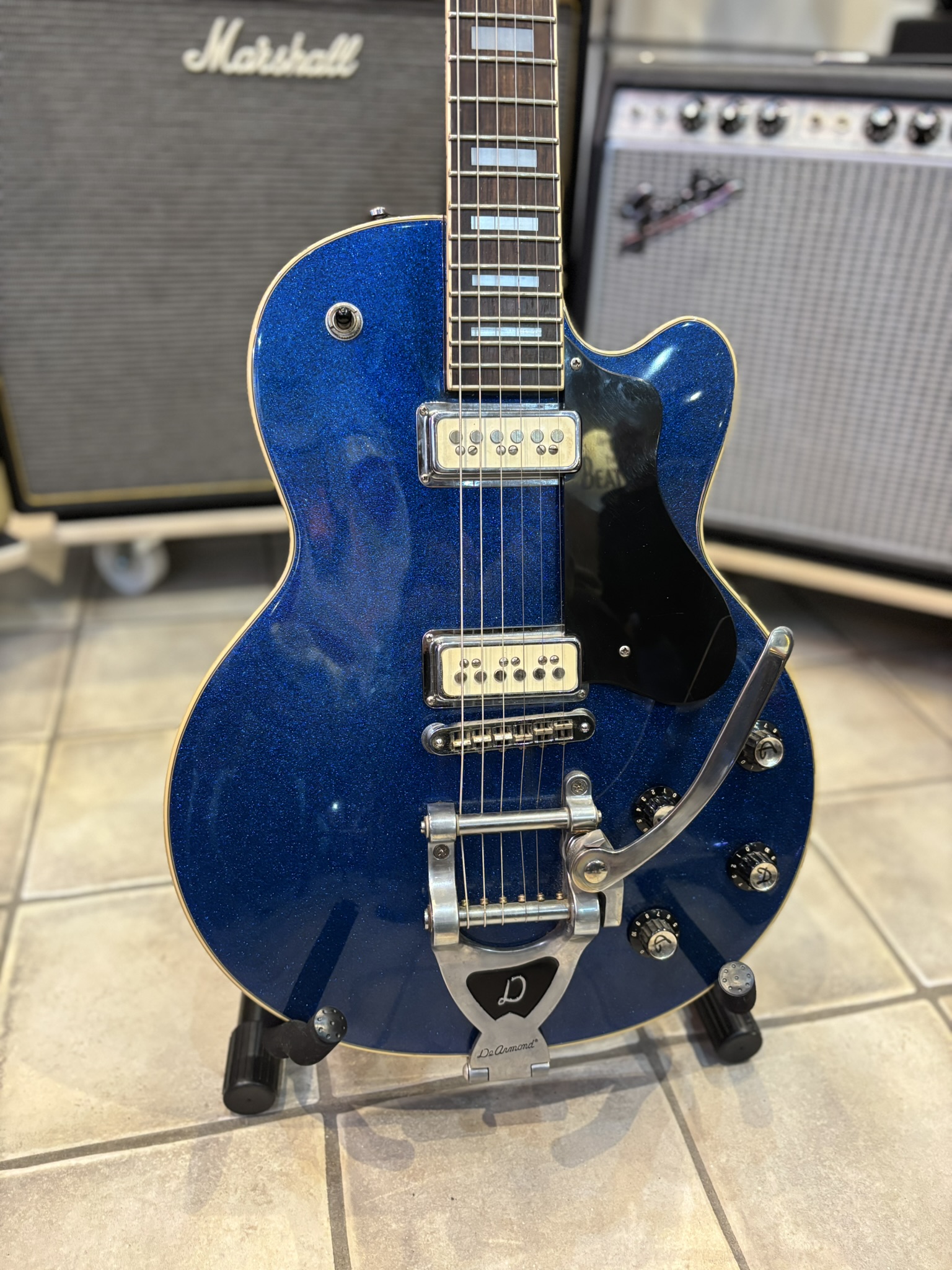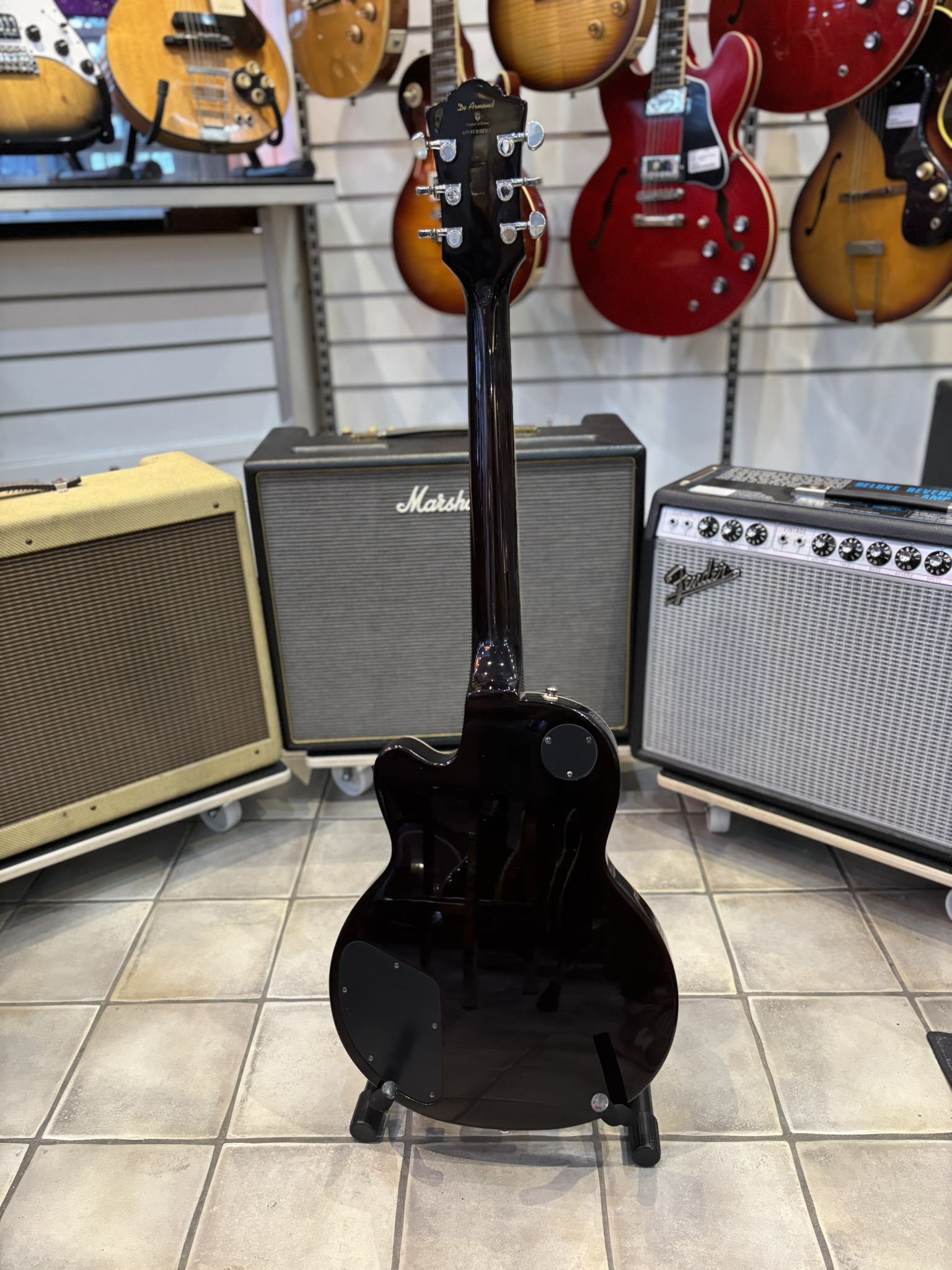 Välbyggd singlecut-modell med limmad hals och två DeArmond-humbuckers.
