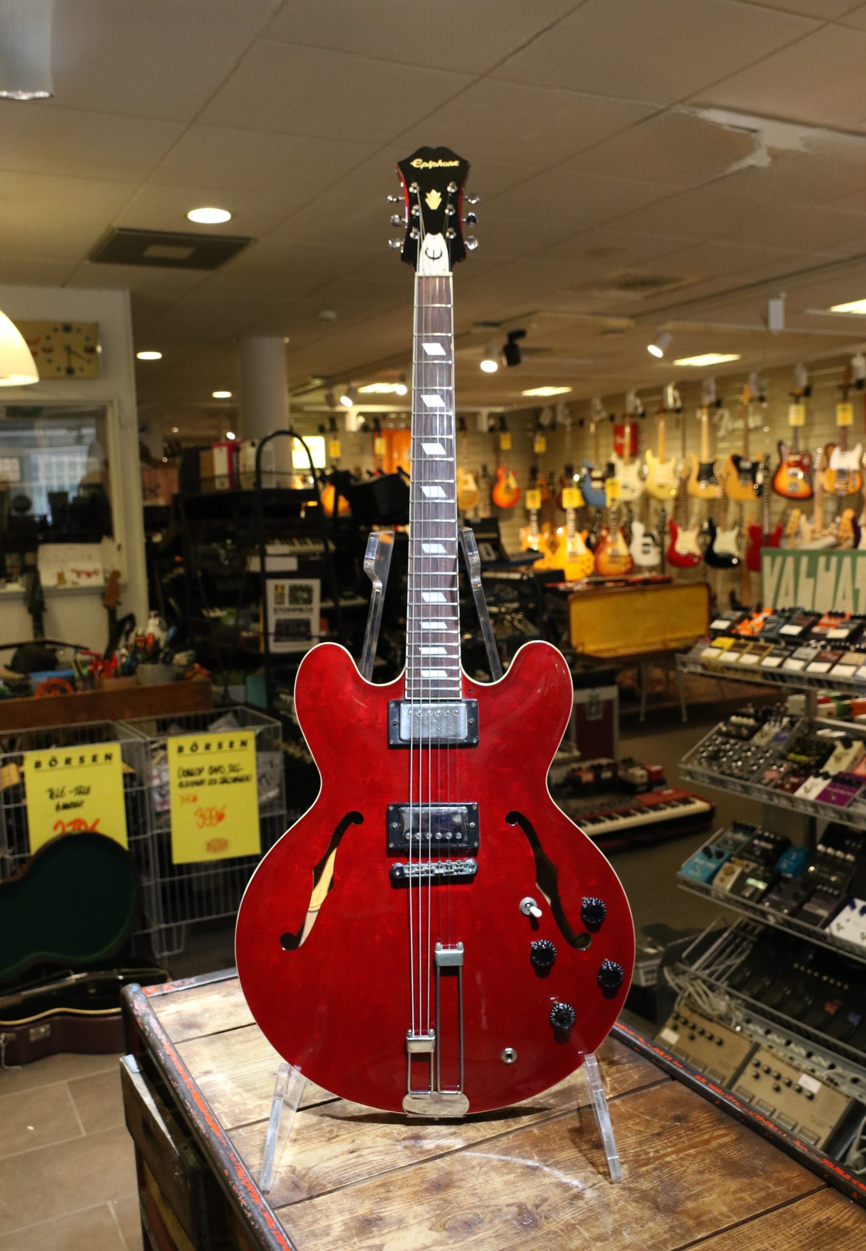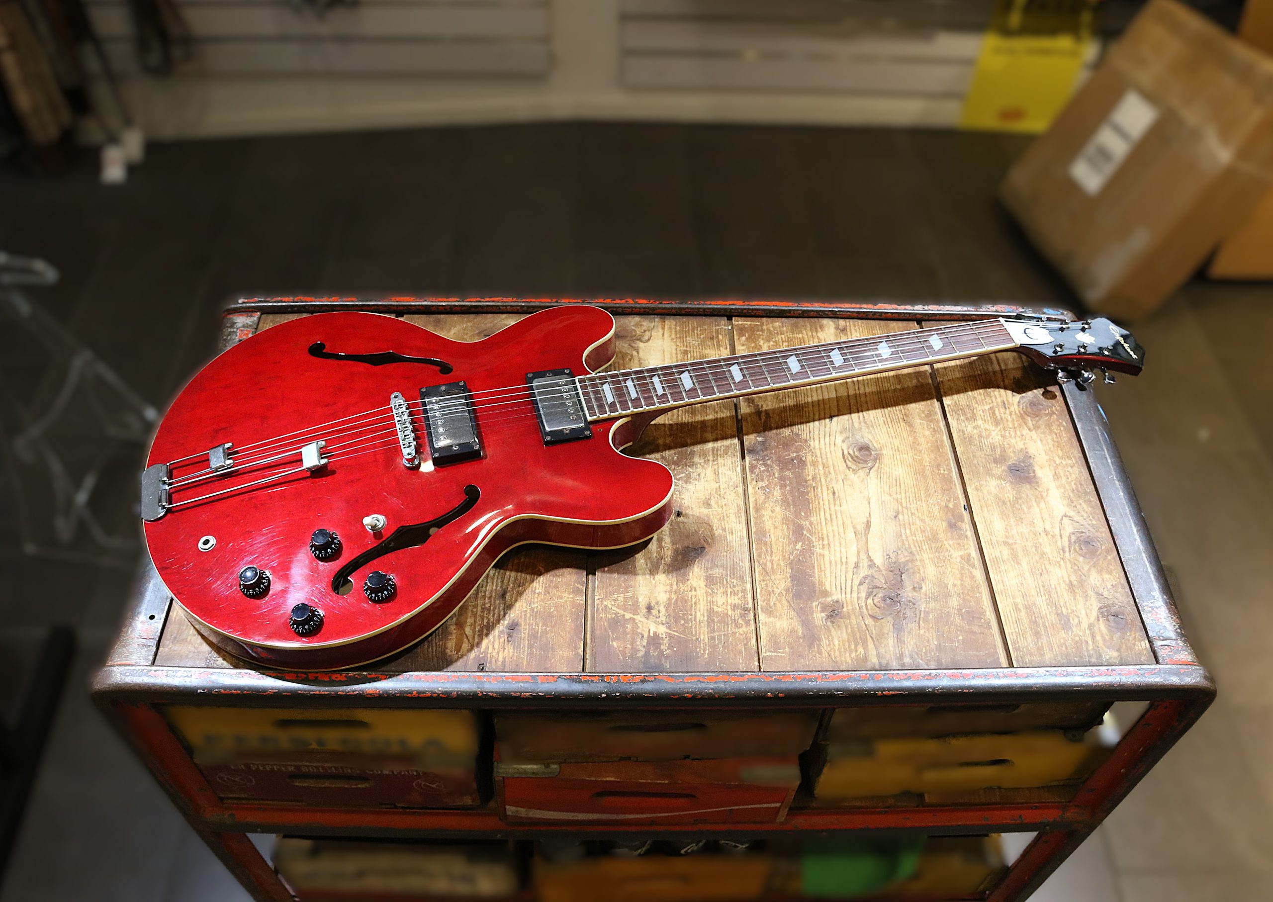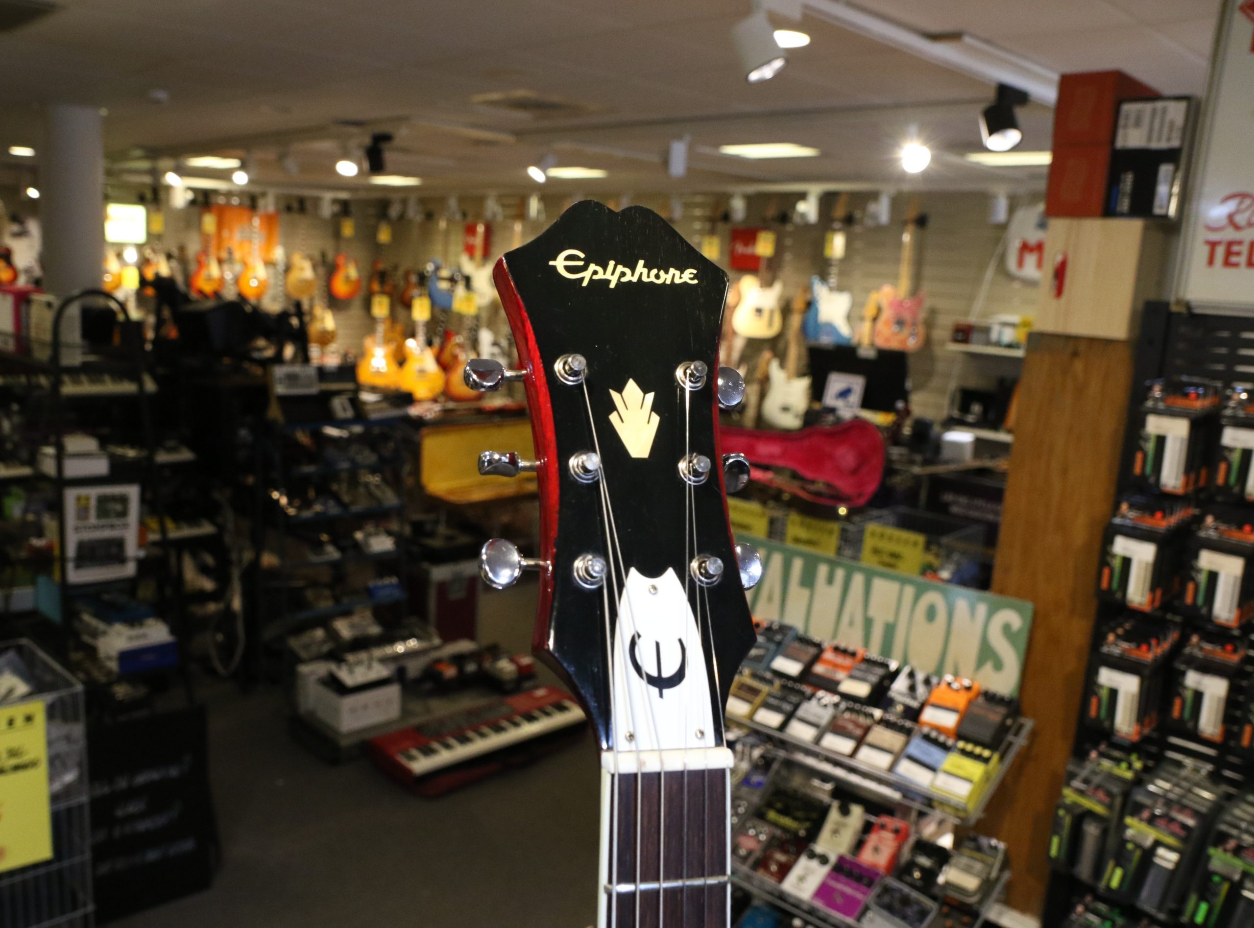 Nyinkommen fin begagnad Epiphone Riviera Cherry tillverkad 1995.