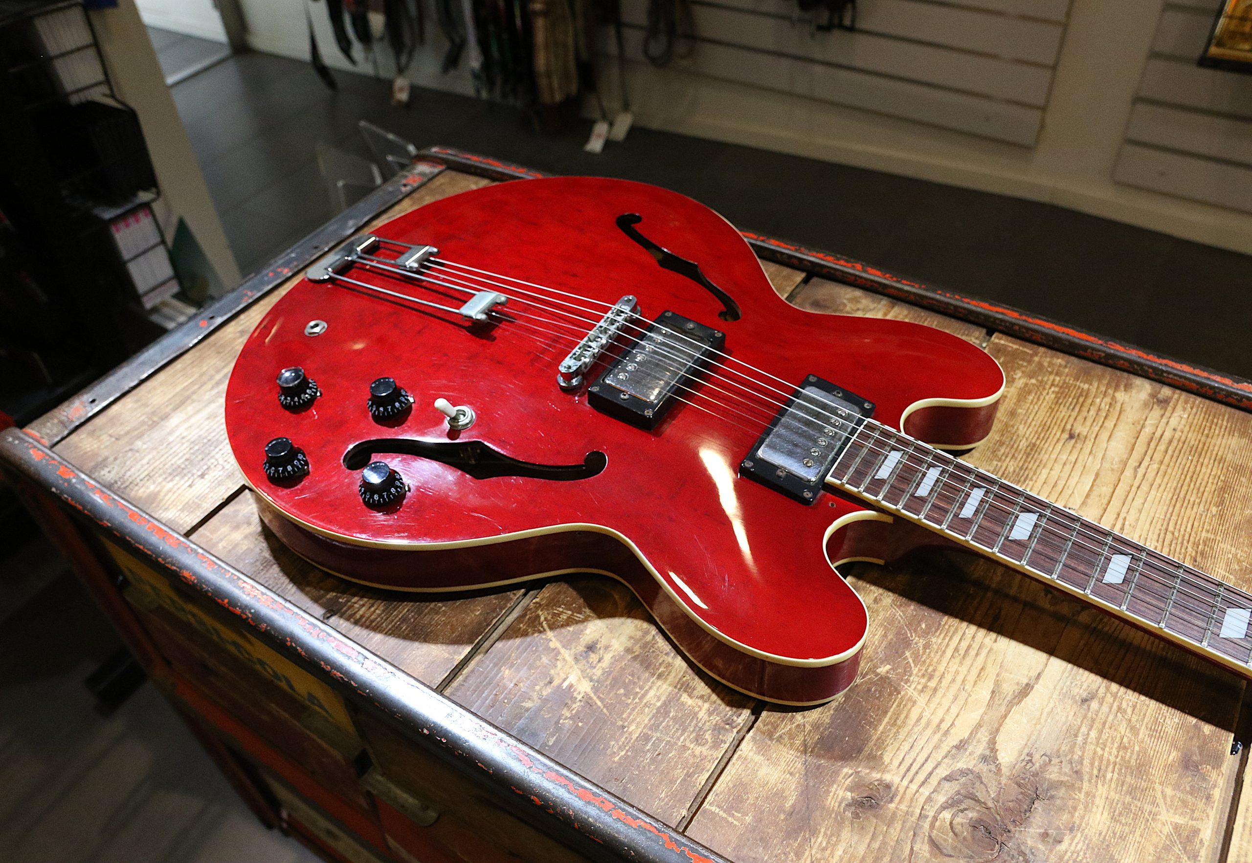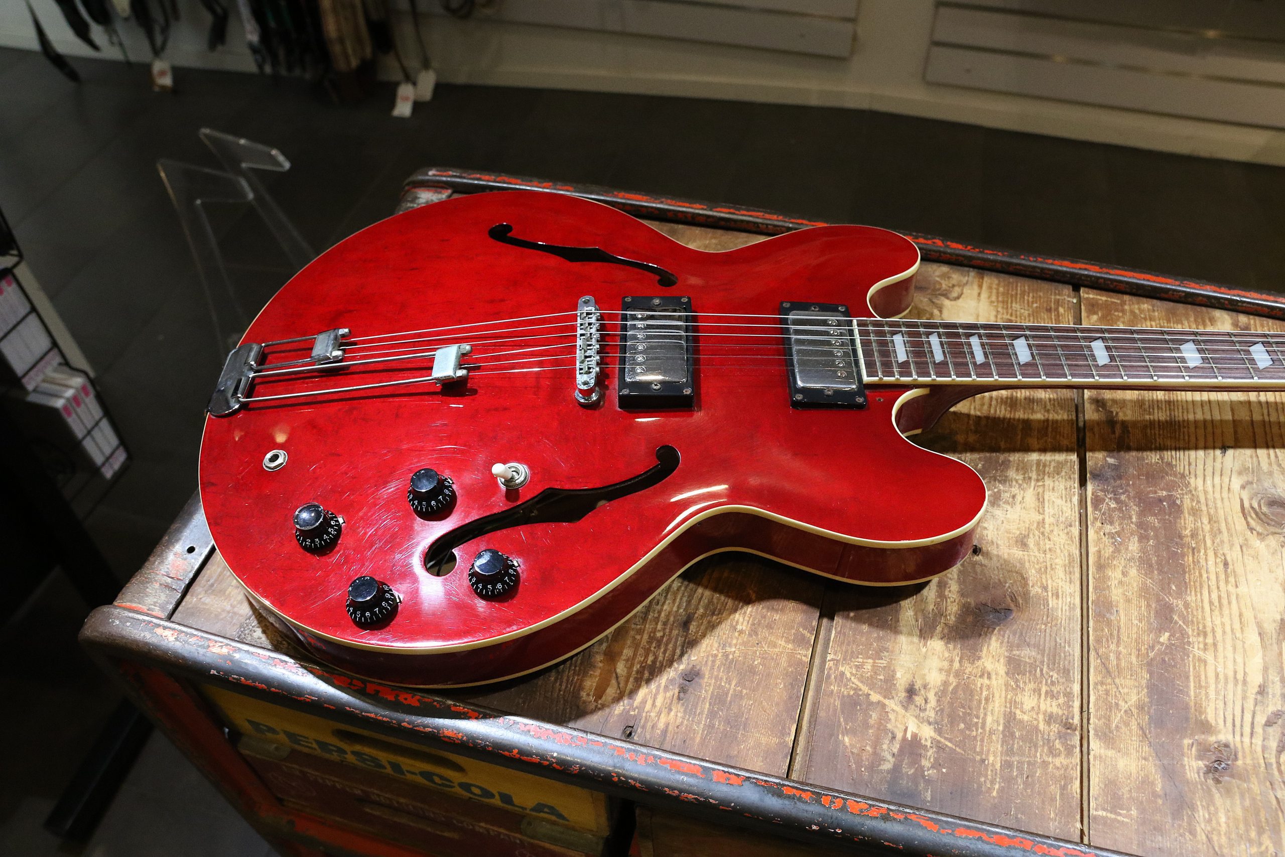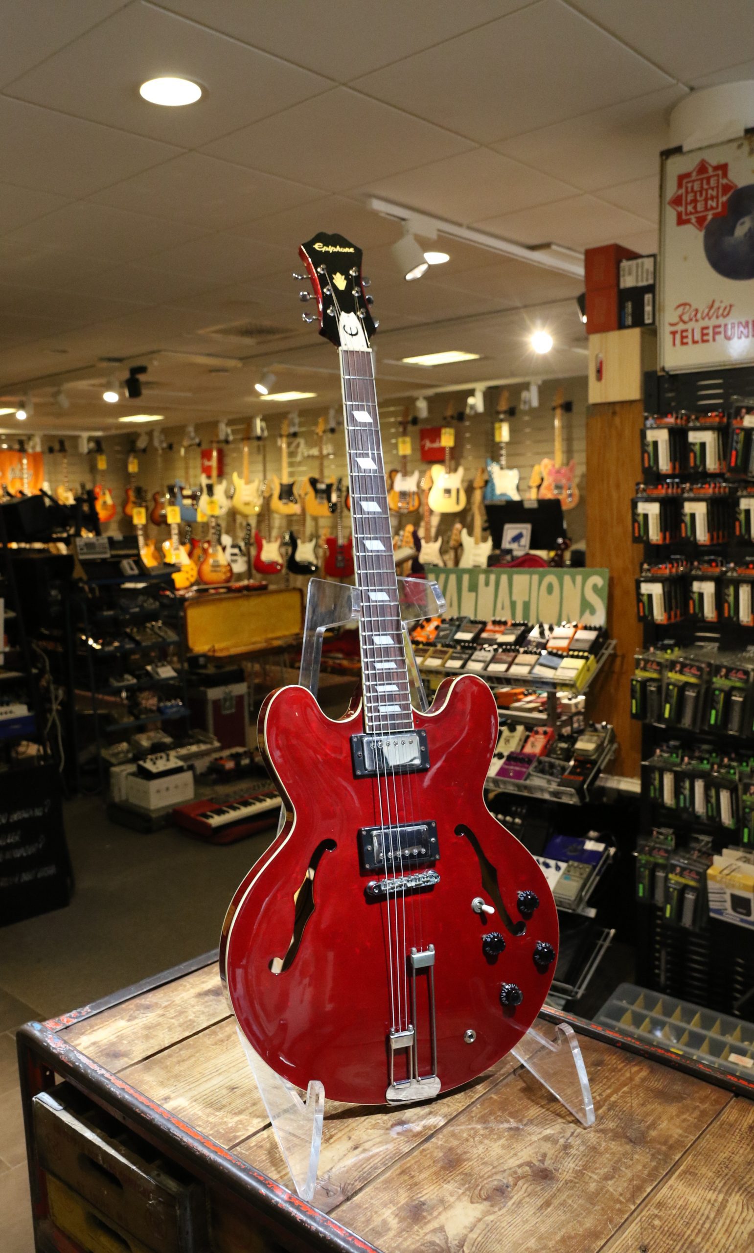 Nyinkommen fin begagnad Epiphone Riviera Cherry tillverkad 1995.