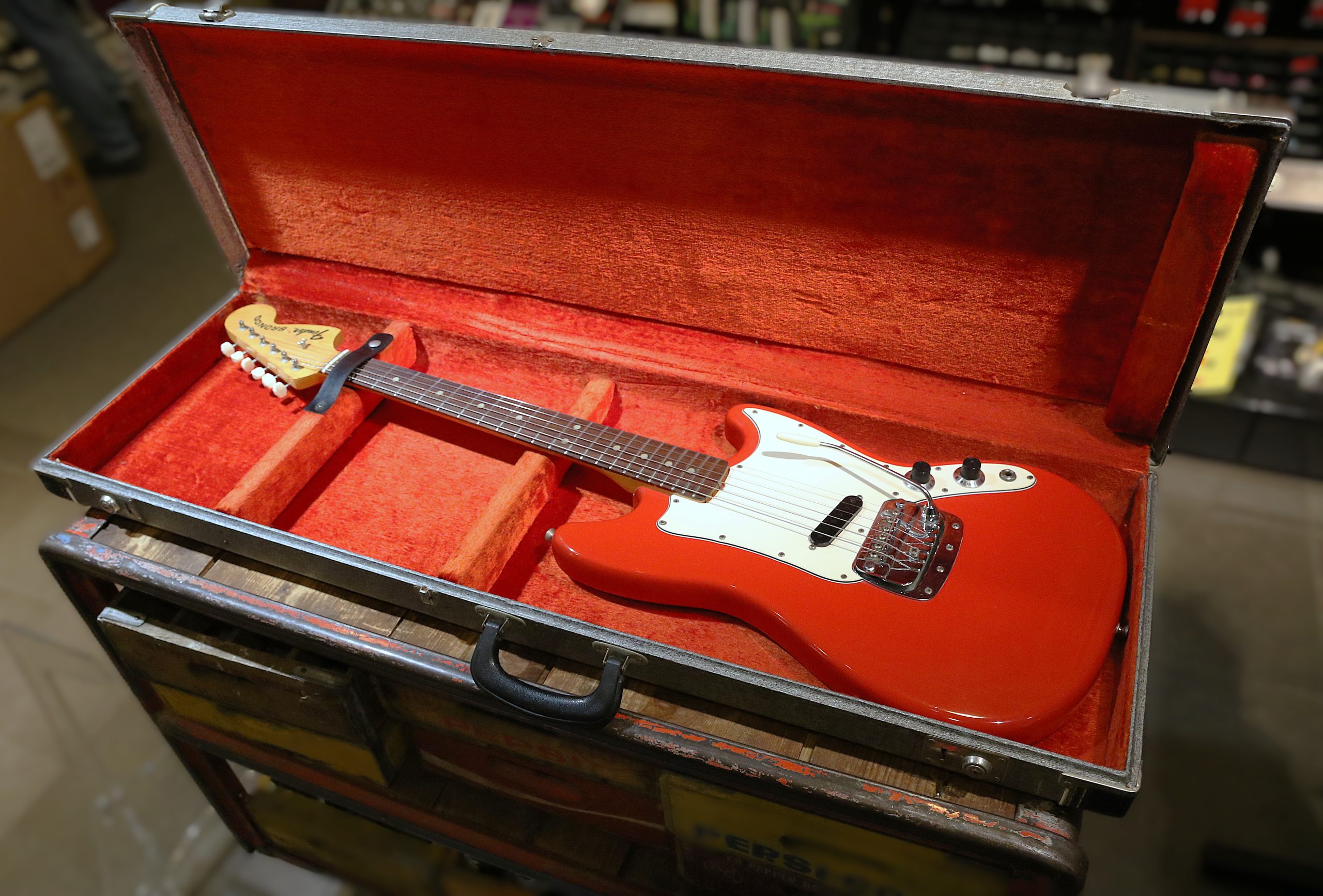 Fender Bronco från 1968 i färgen Dakota Red med orginalcase.