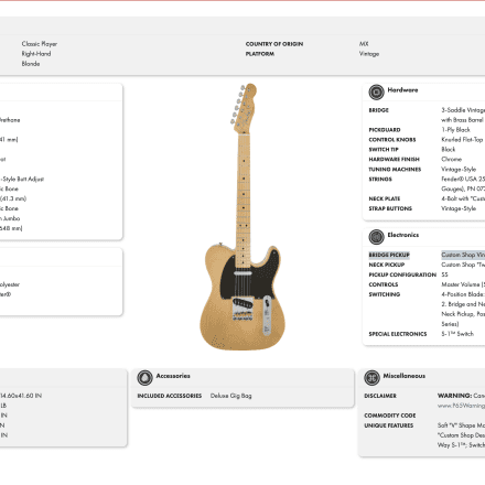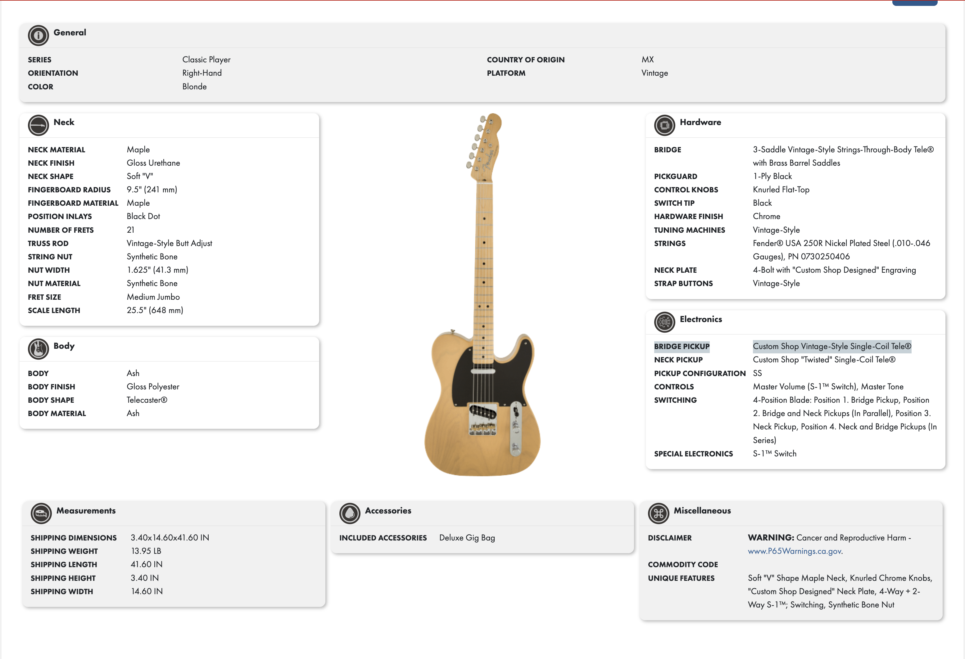 Fender Classic Player Baja Telecaster Custom Shop Design – 2011. Vikt: 3,25 kg