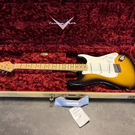 Fender Custom Shop ’56 Stratocaster Journeyman Relic i 2-Tone Sunburst. Serial: R124846. Vikt: 3,1 kg.