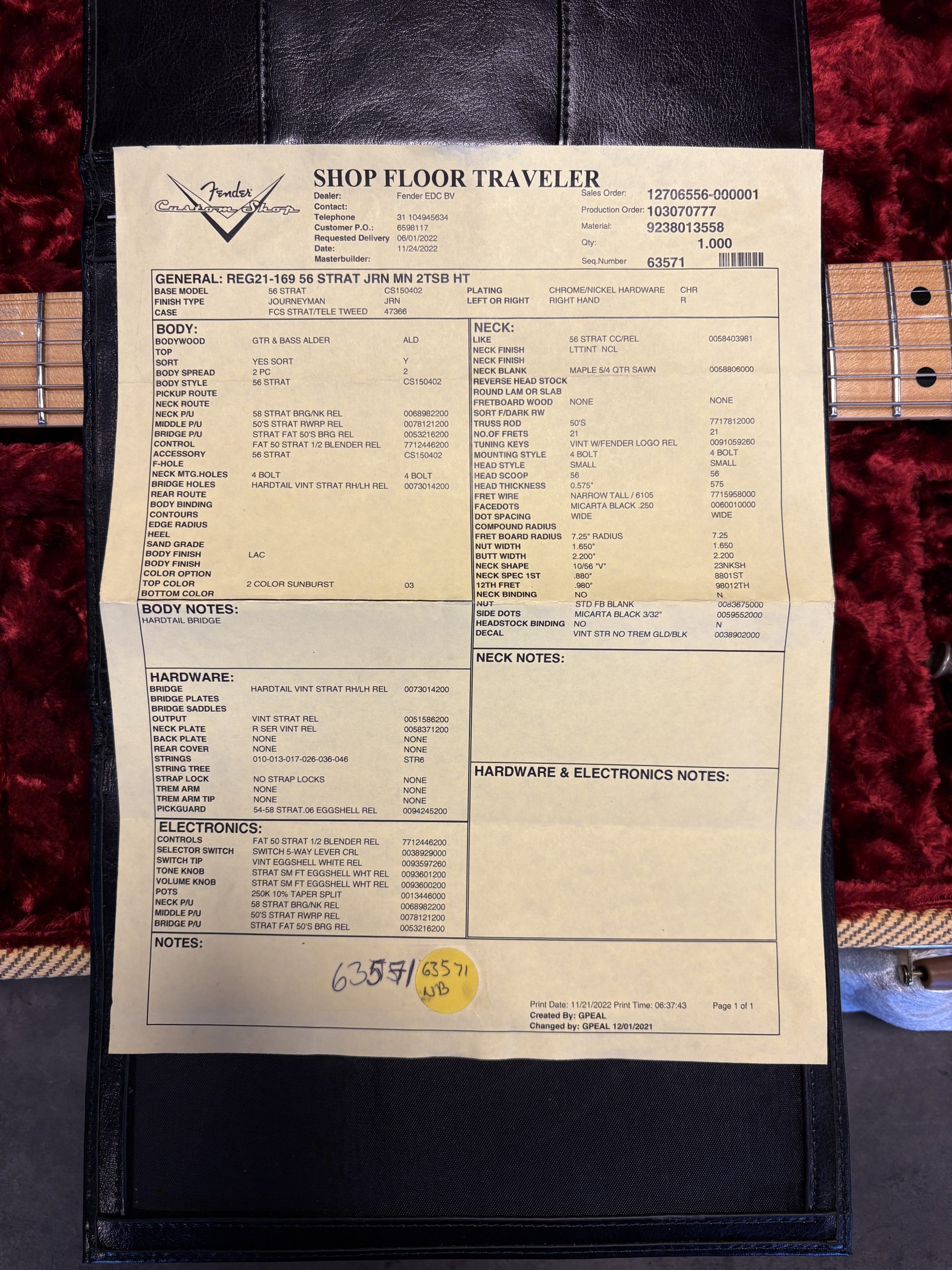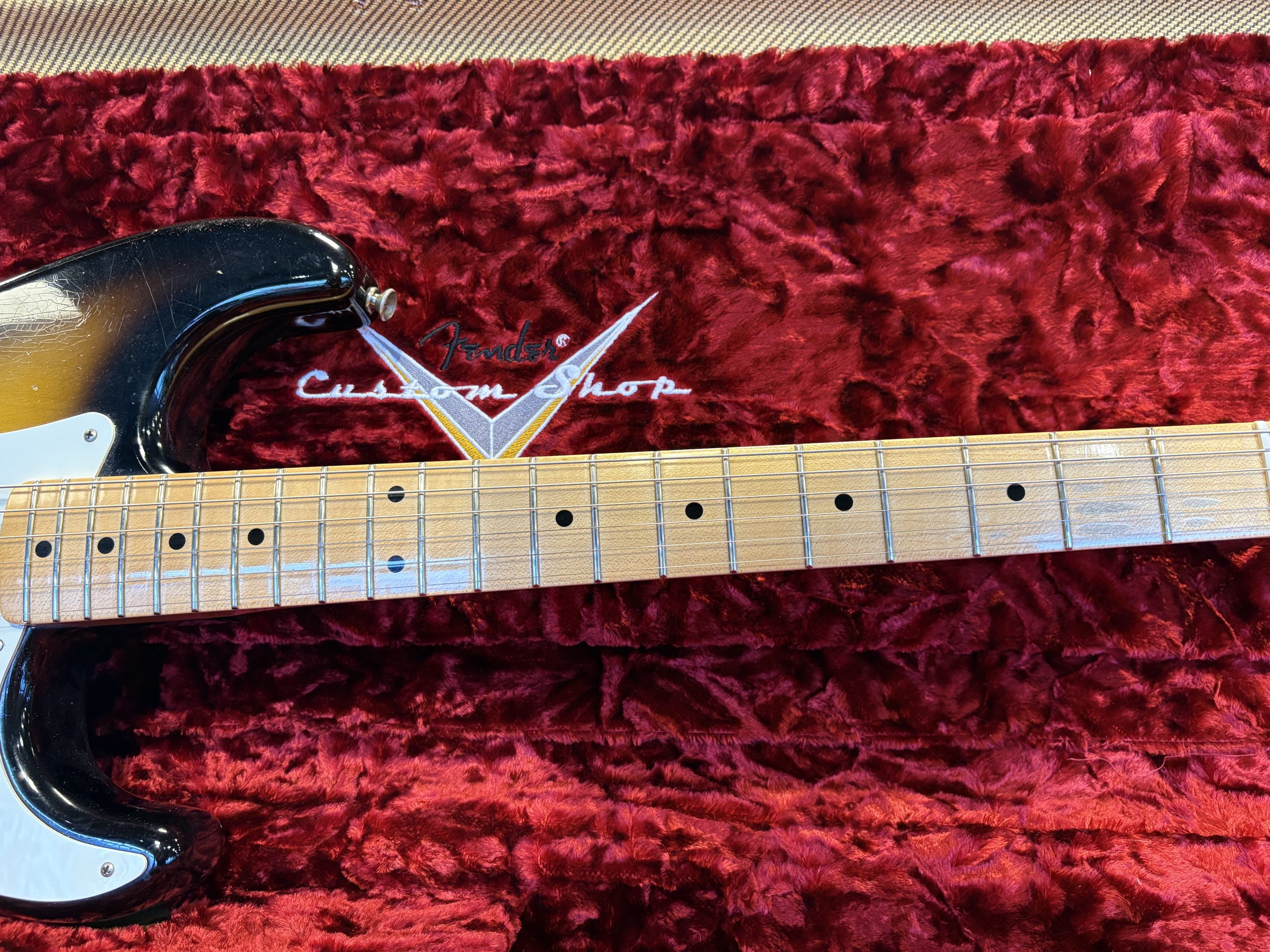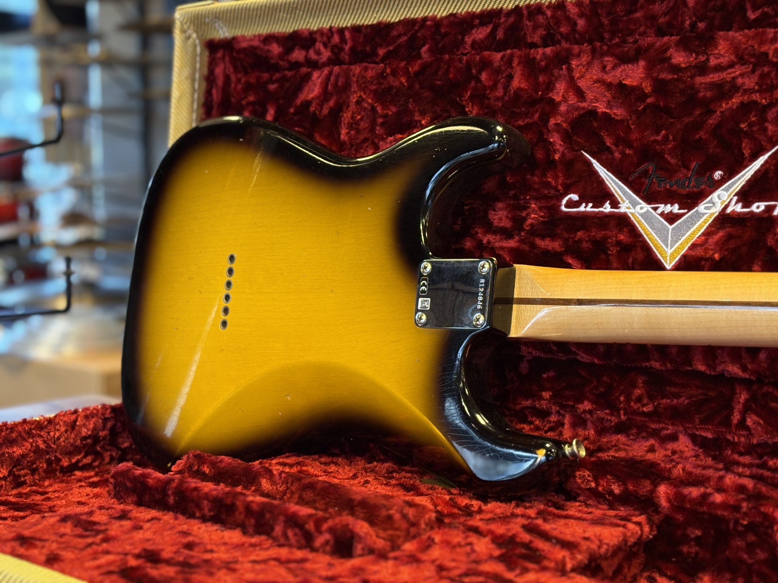 Fender Custom Shop ’56 Stratocaster Journeyman Relic i 2-Tone Sunburst. Serial: R124846. Vikt: 3,1 kg.
