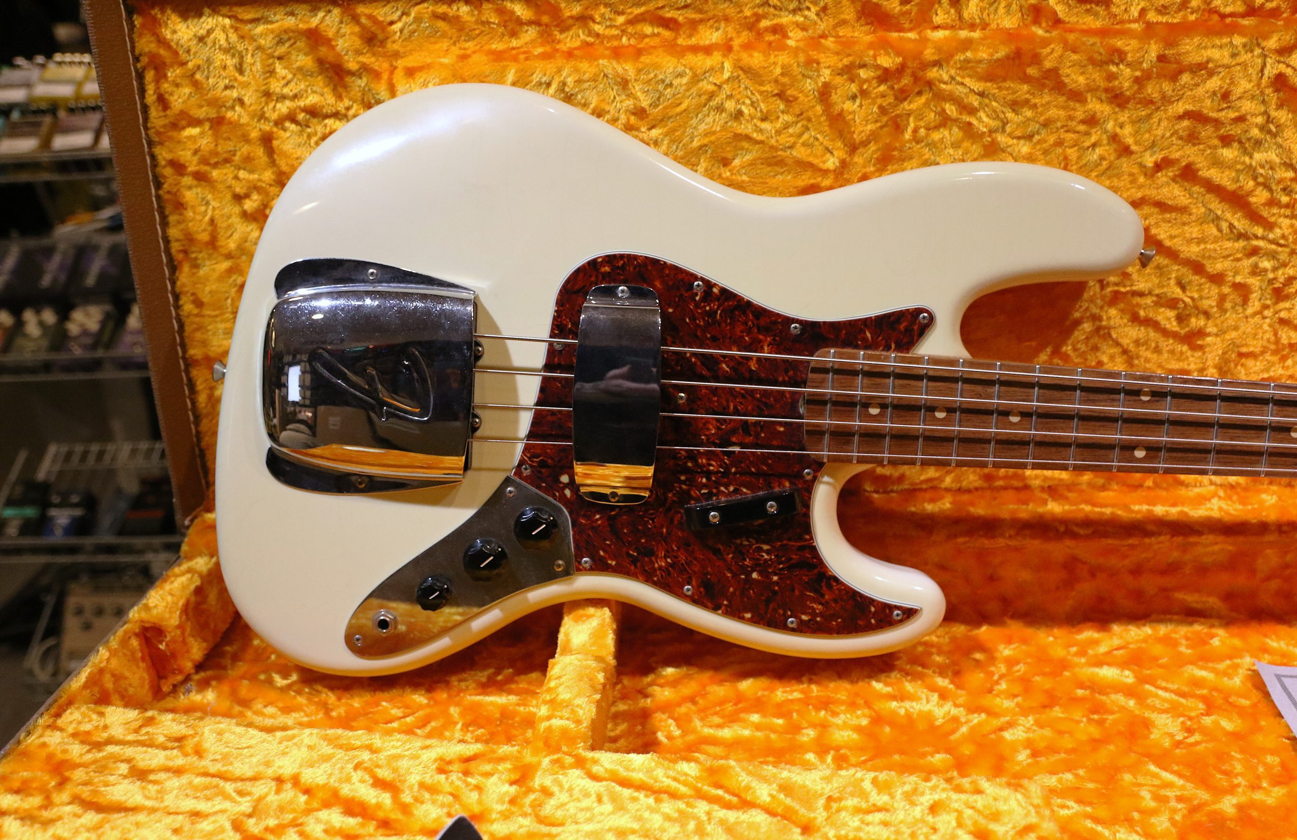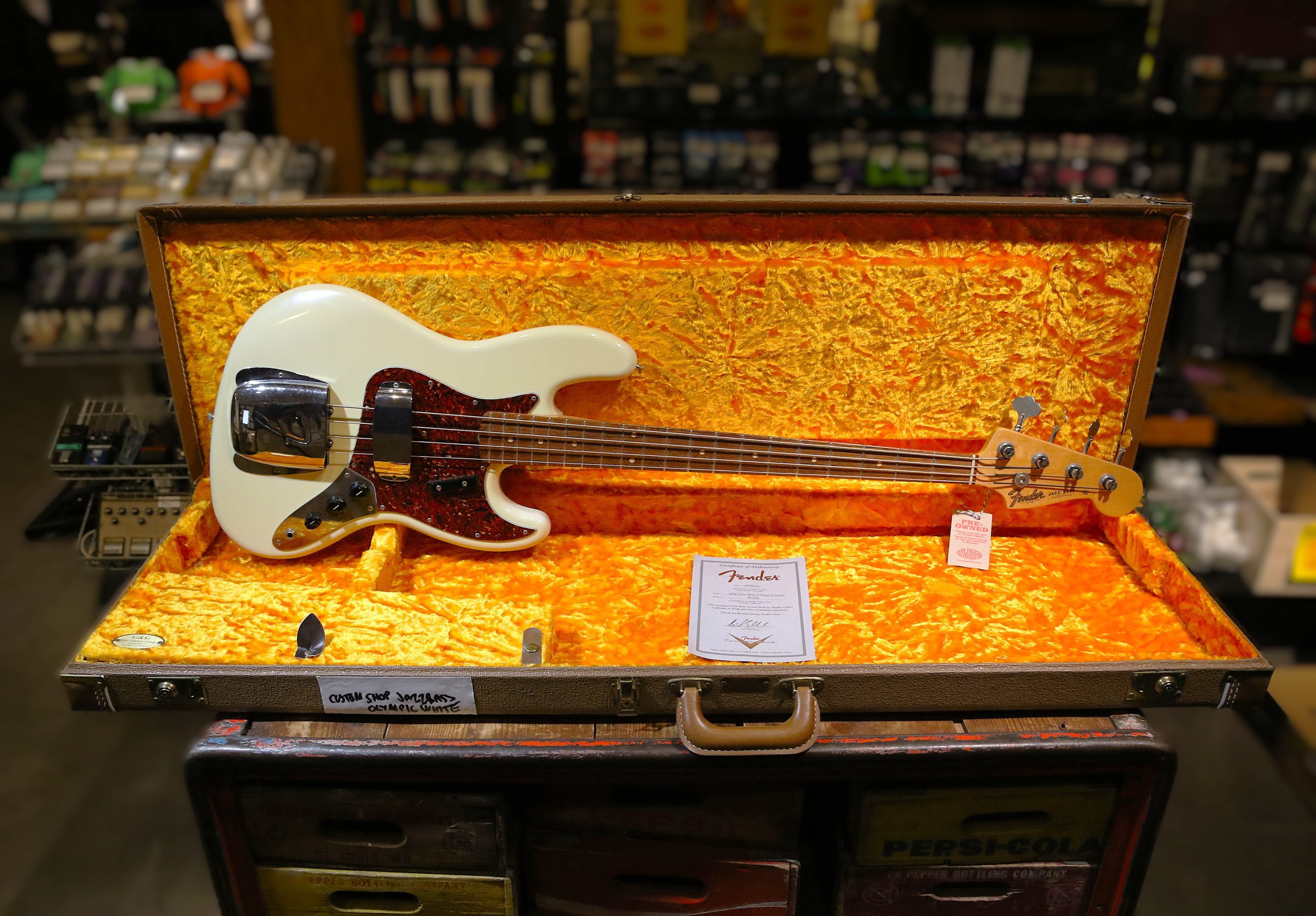 Nu har vi fått in en mycket fin Fender Custom Shop Jazz Bass i Olympic White. Closet Classic Relic,(lite relic)