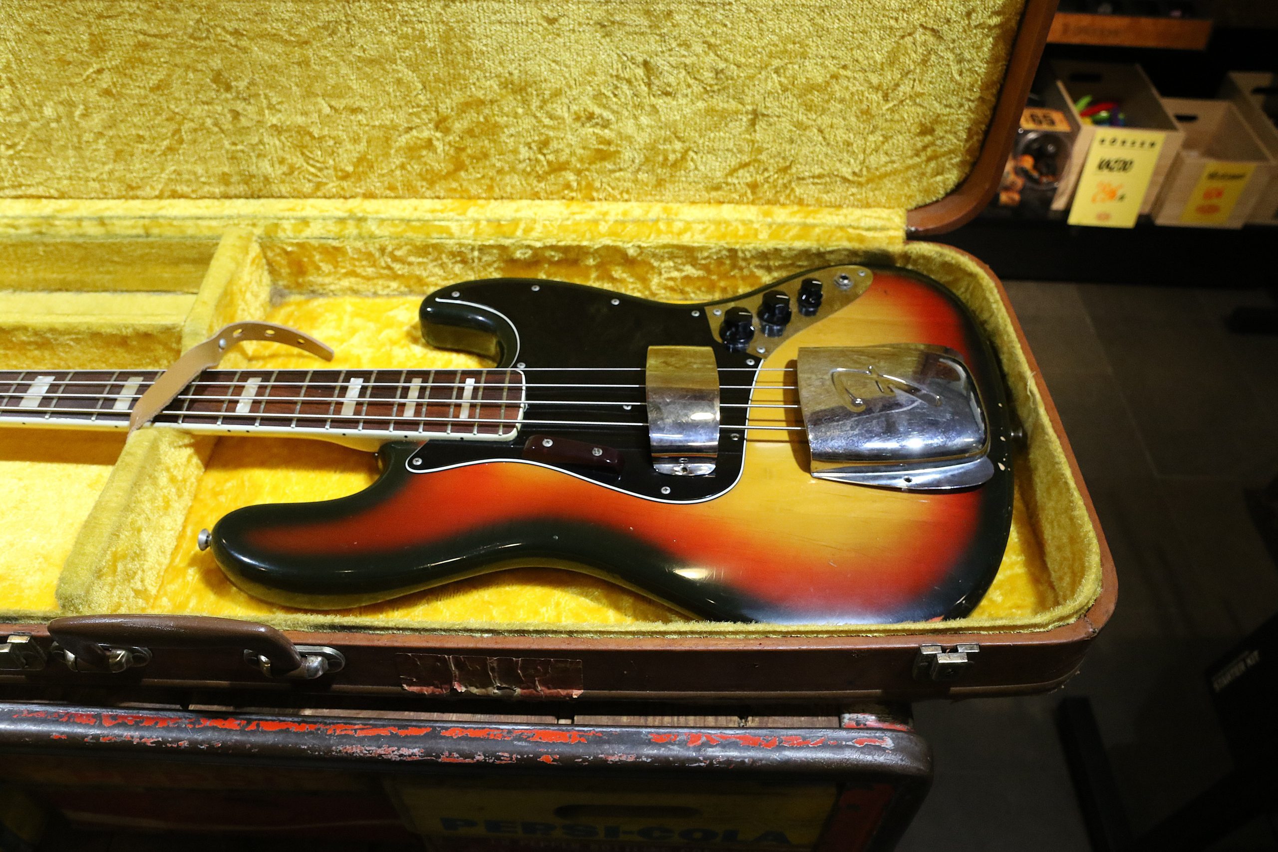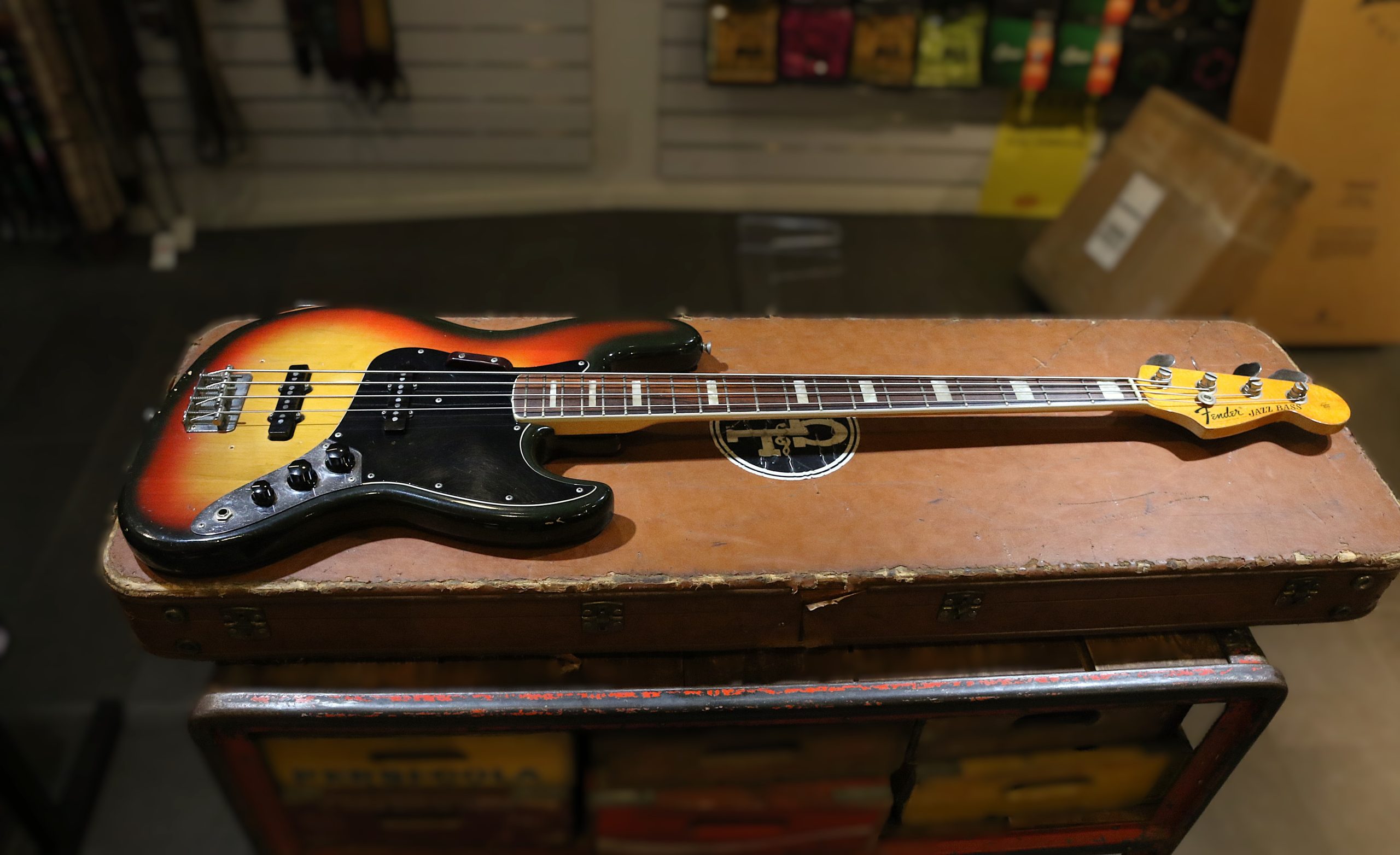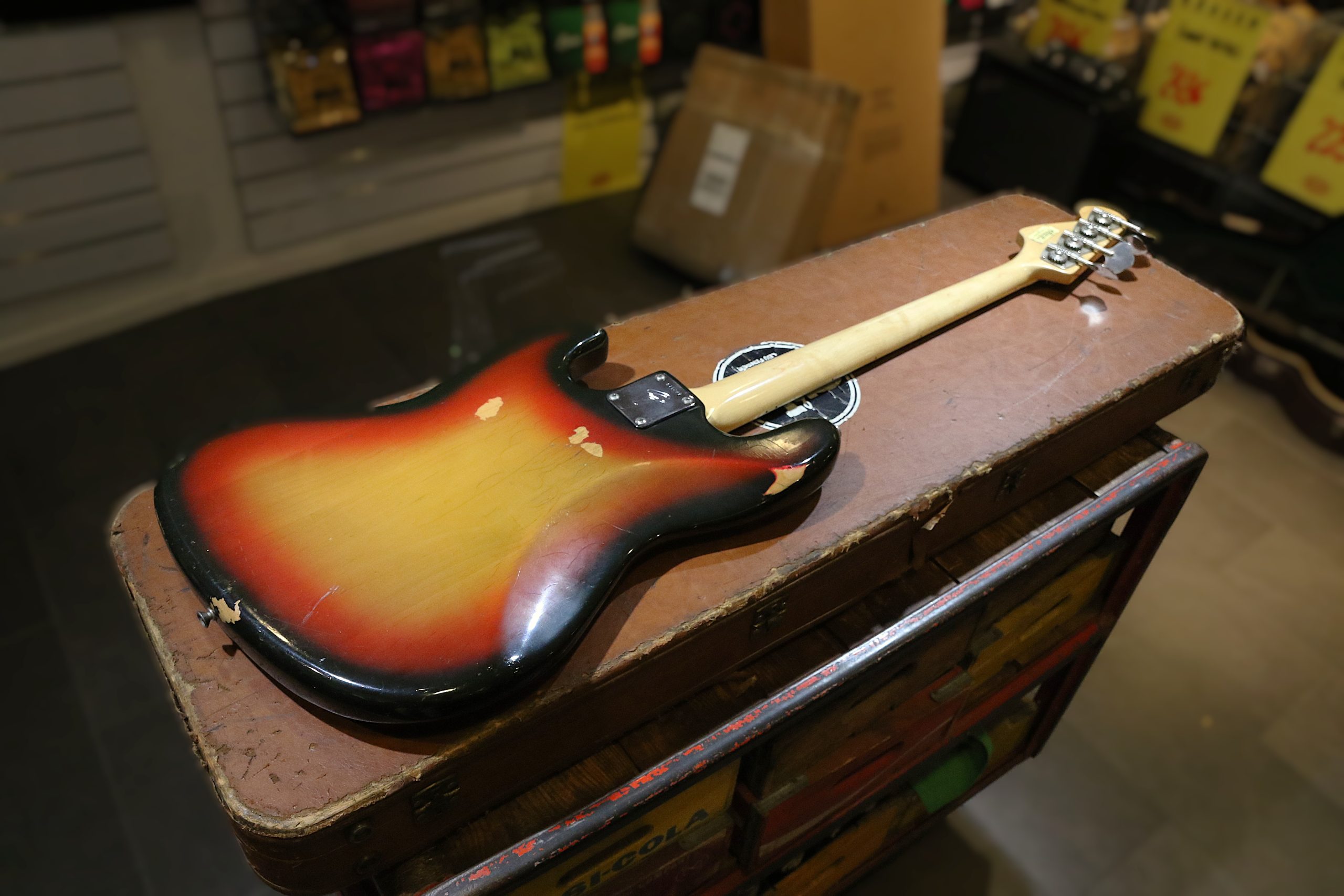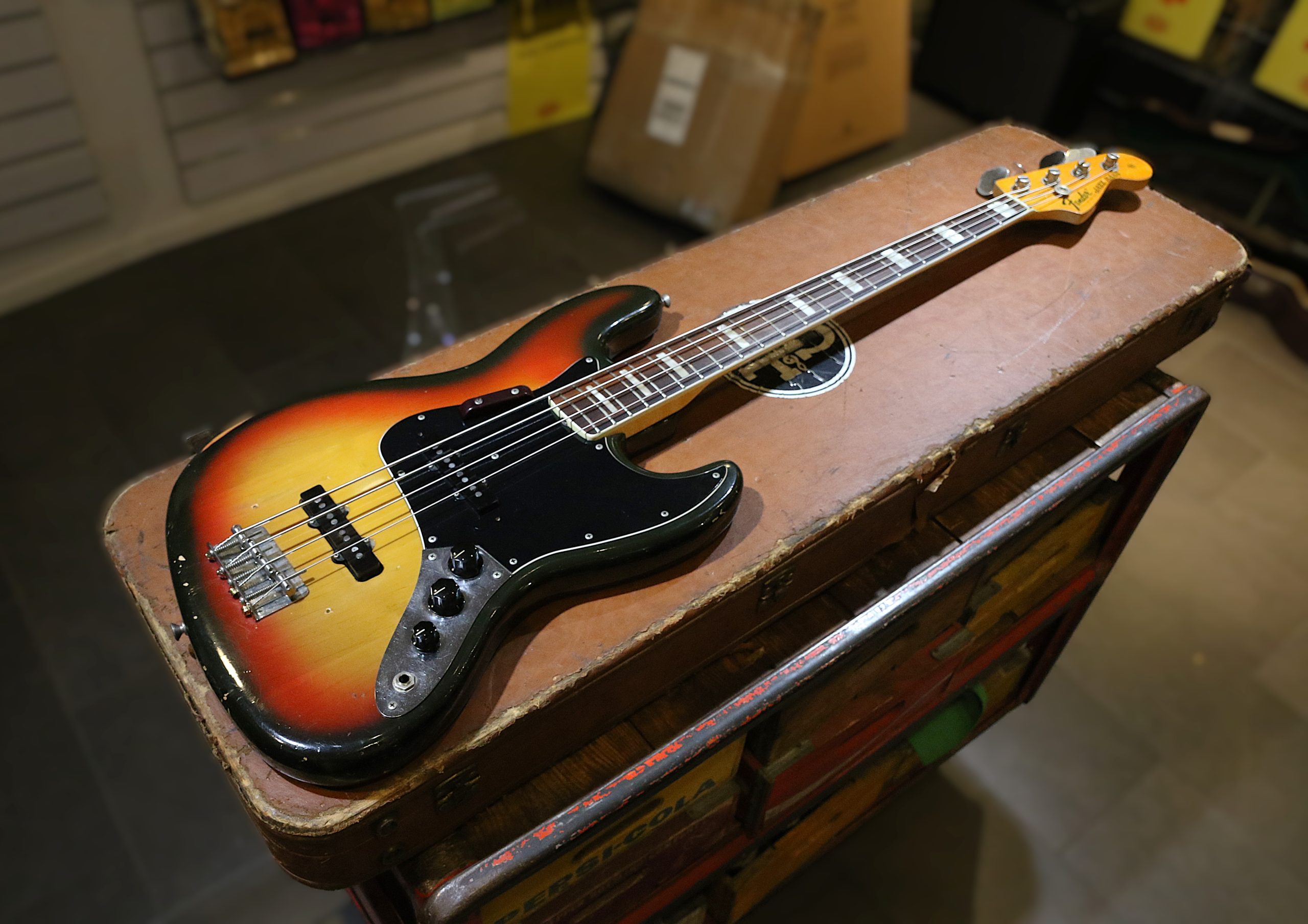 Nu har vi fått in en mycket fin och lätt 1974 Fender Jazzbass i Sunburst.