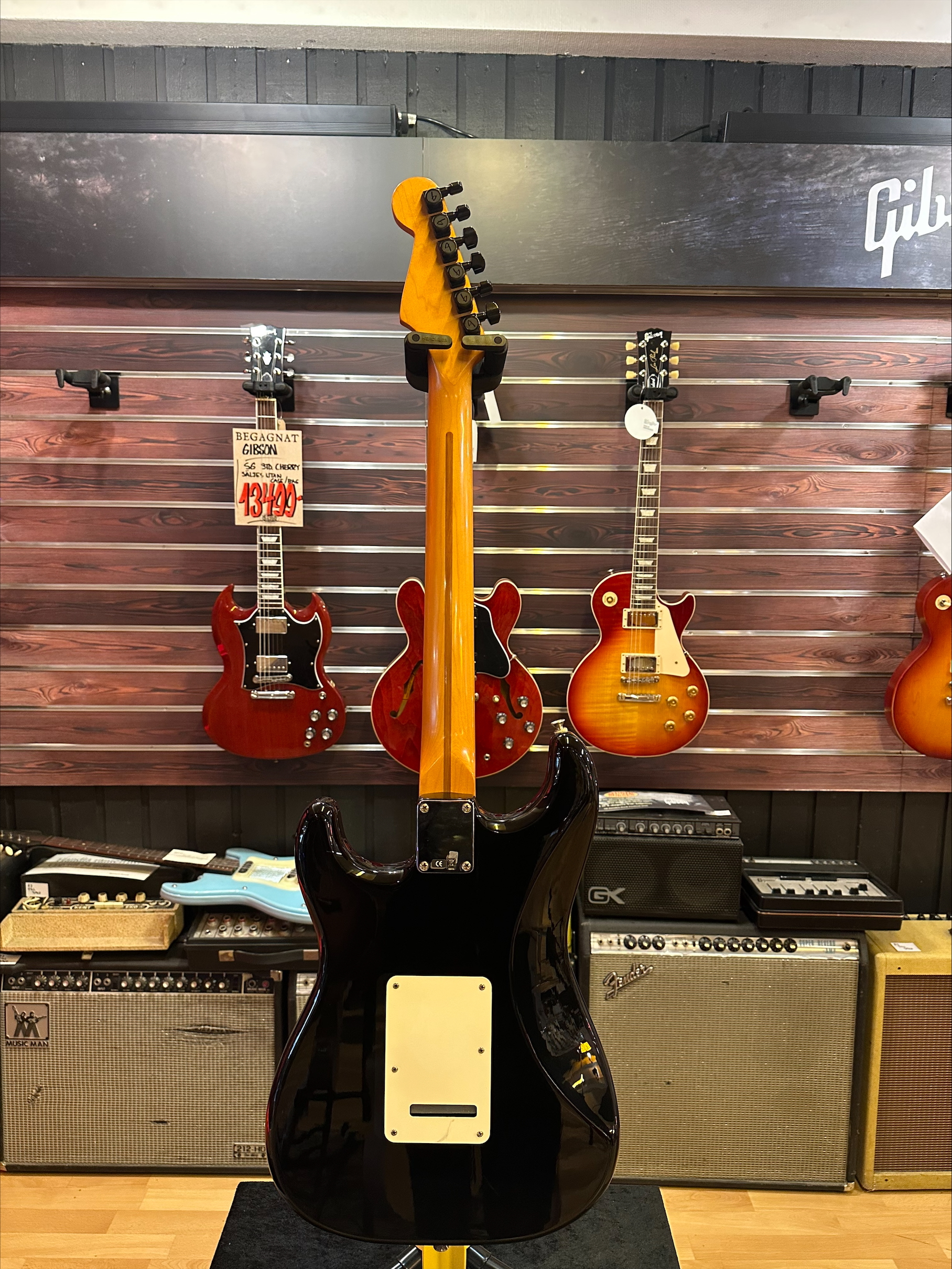 Fin begagnad stratocaster, stämmskruvar är ej orginal utan är utbytta till låsbara fender tuners.