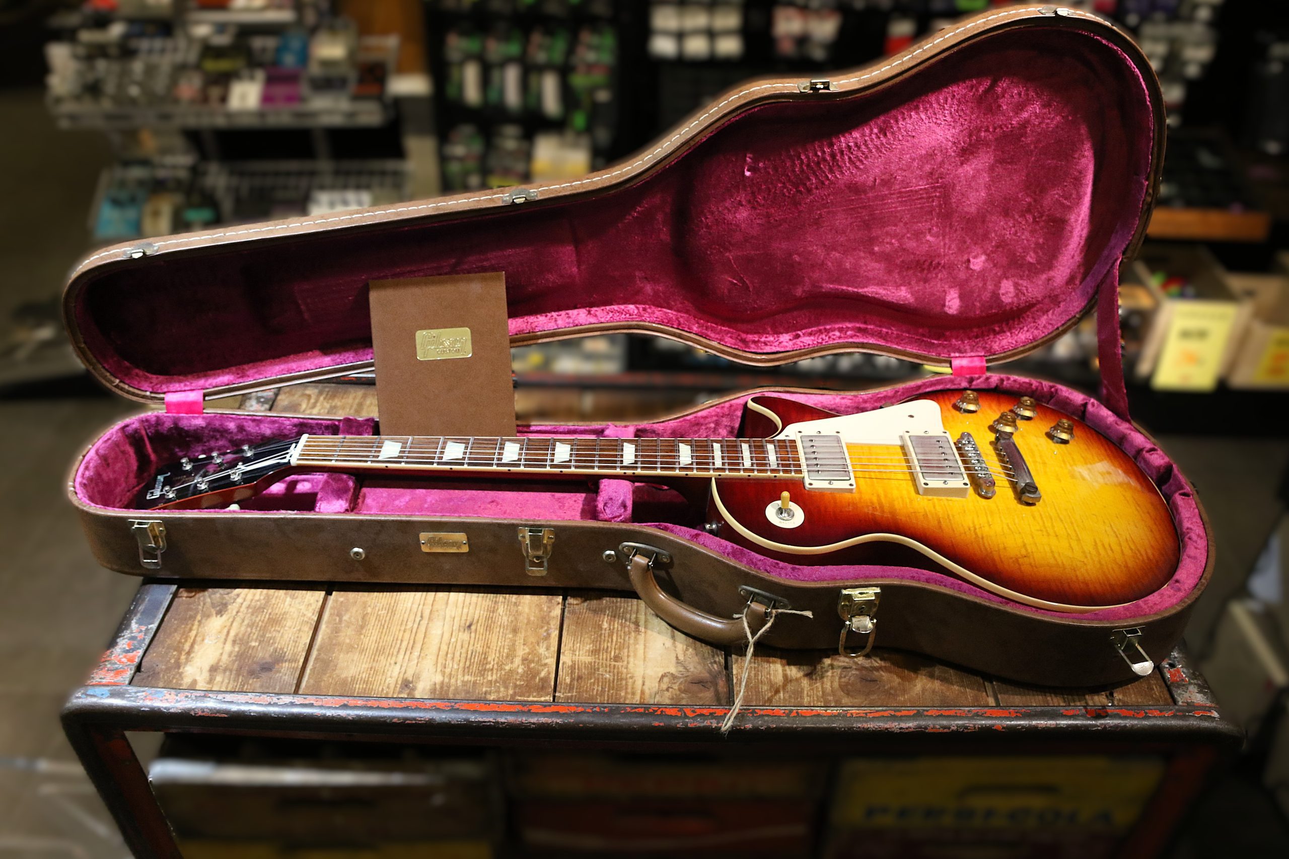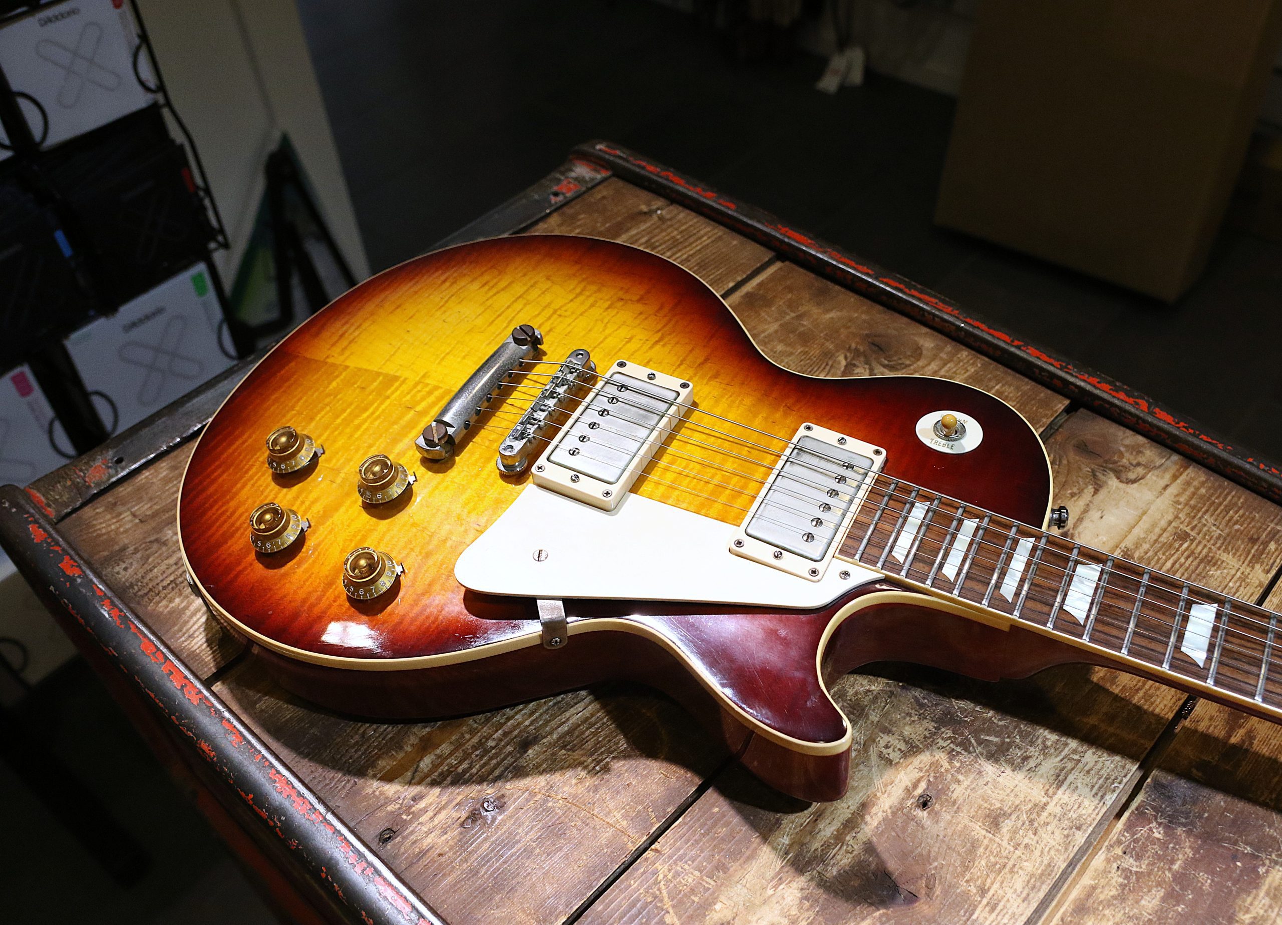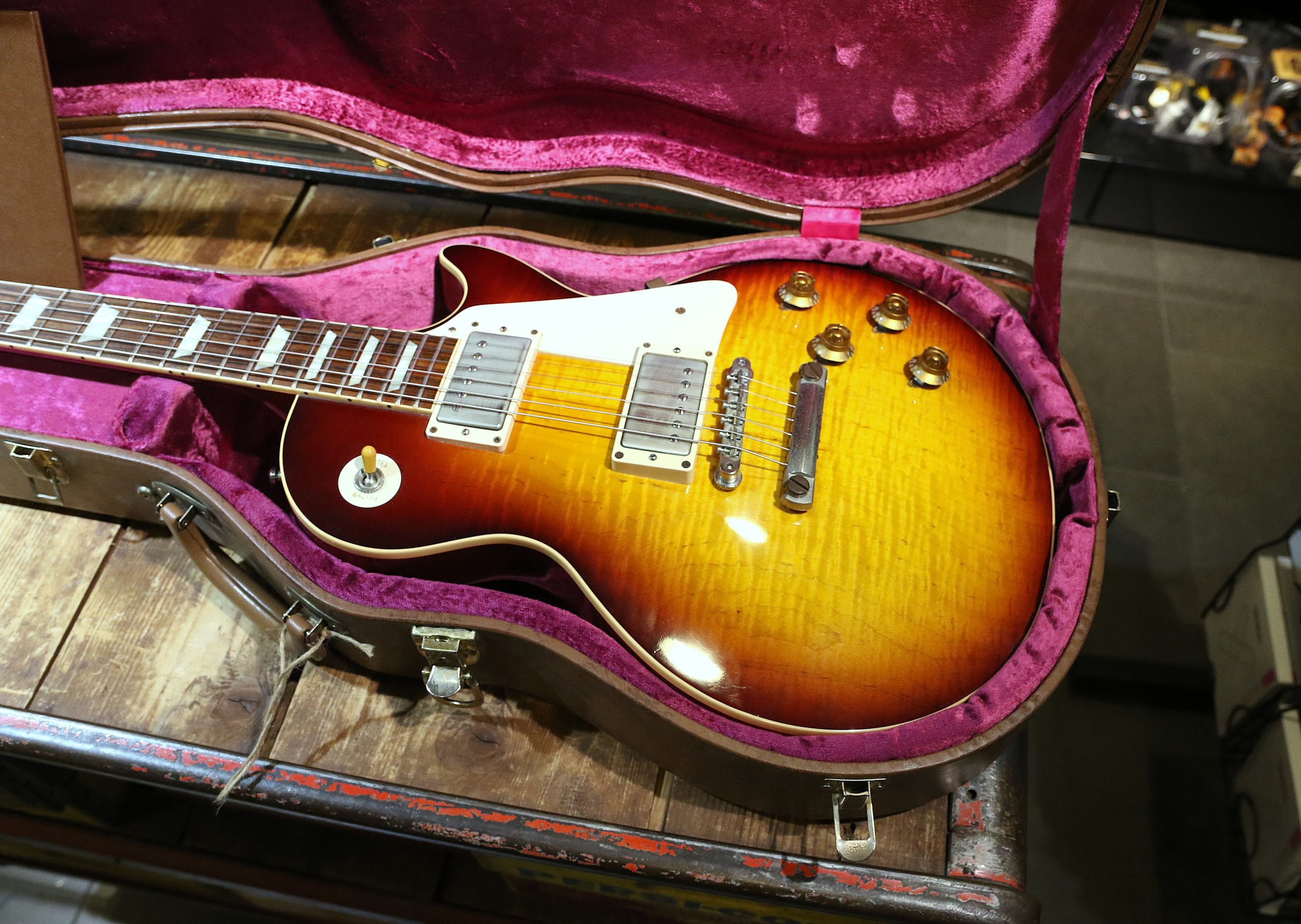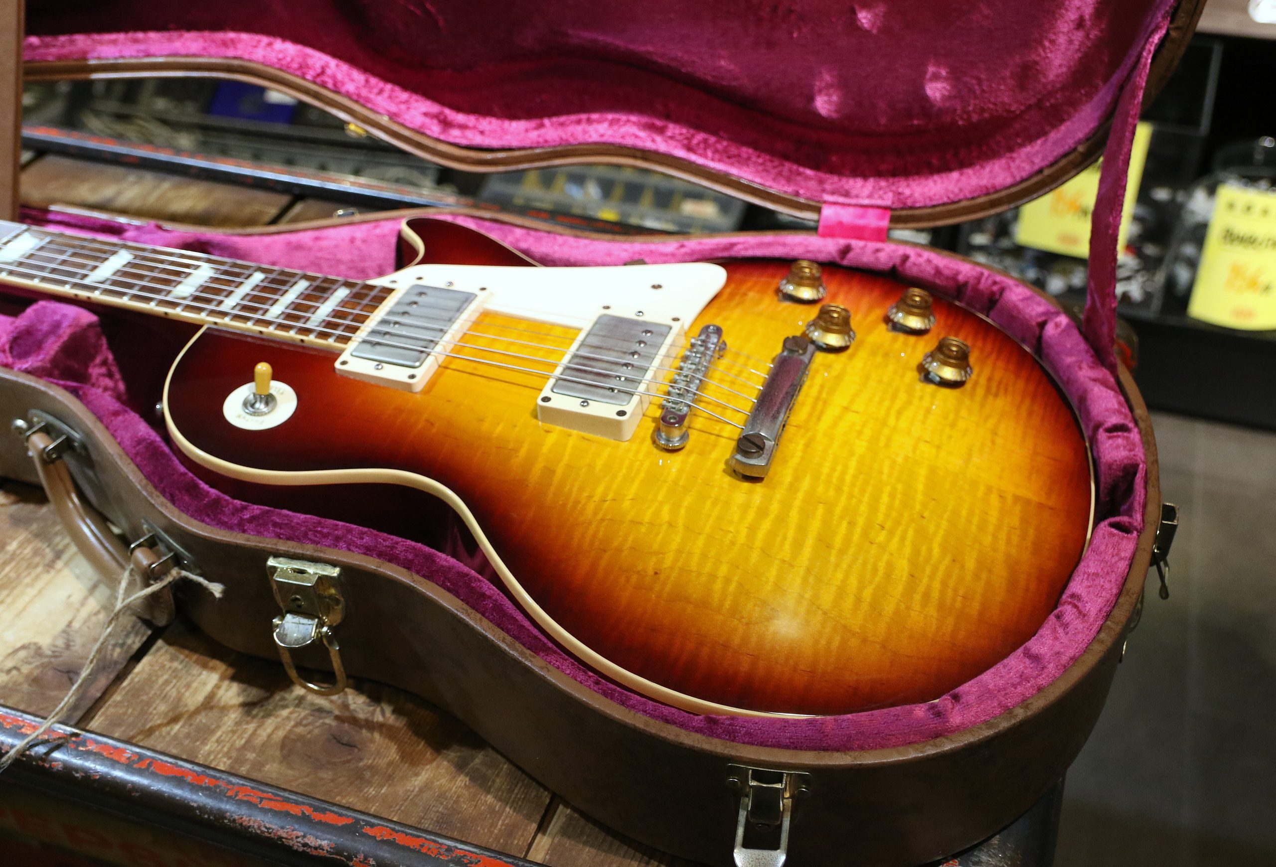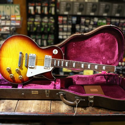 Nu har vi fått in en mycket fin Custom Shop Gibson Les Paul ´58 Reissue (R8) Flametop i färgen Bourbonburst.
