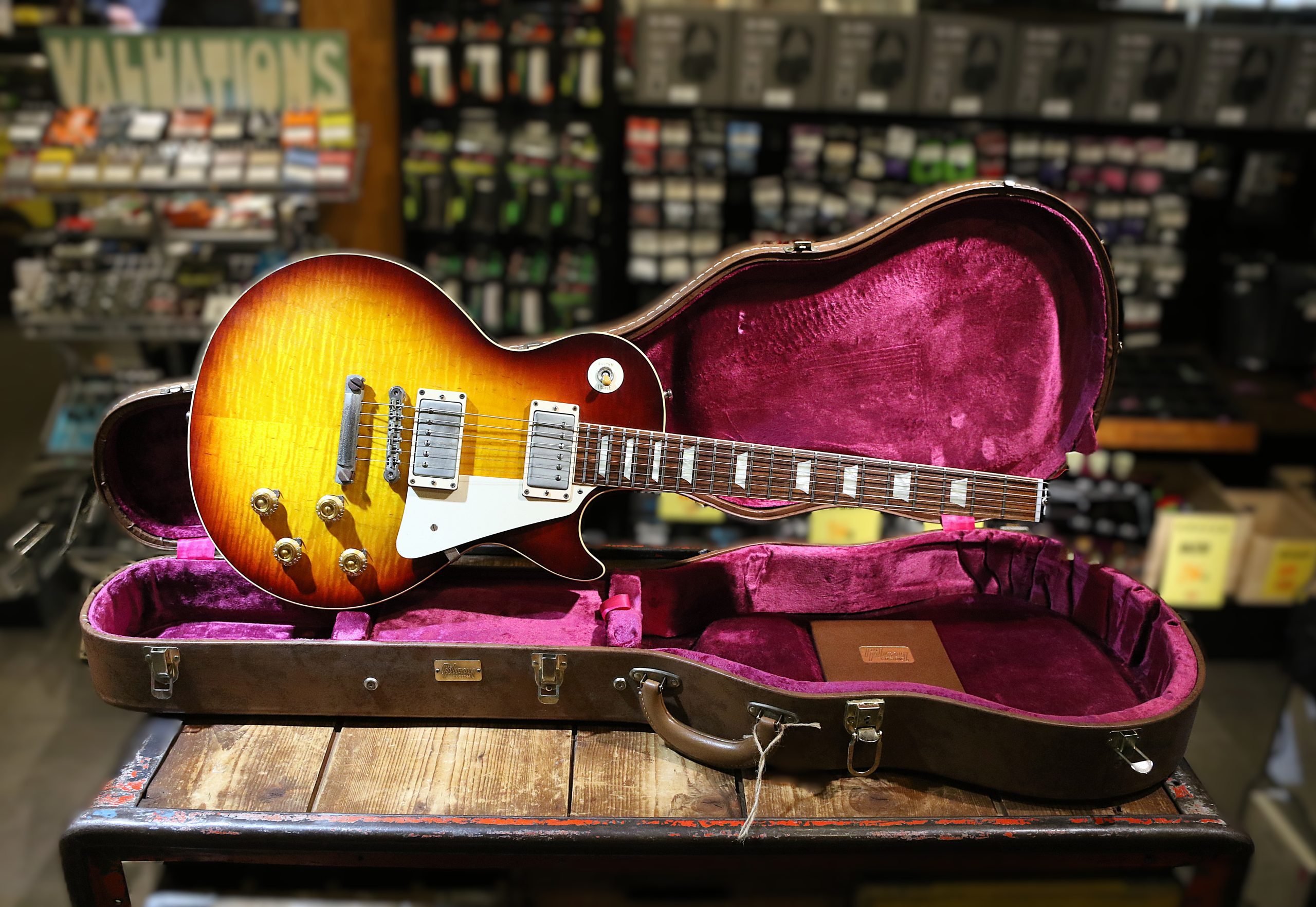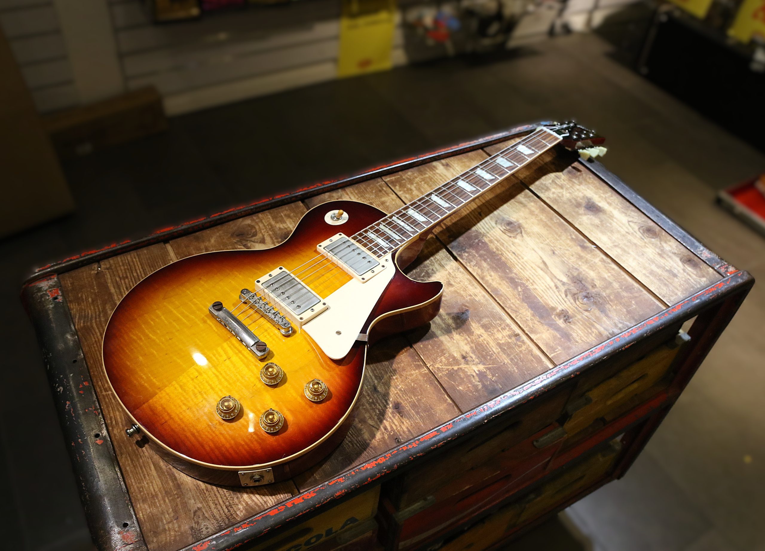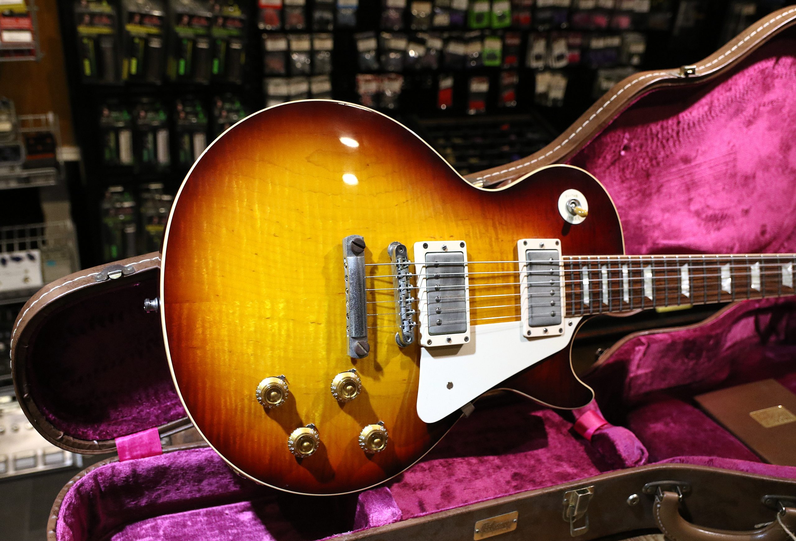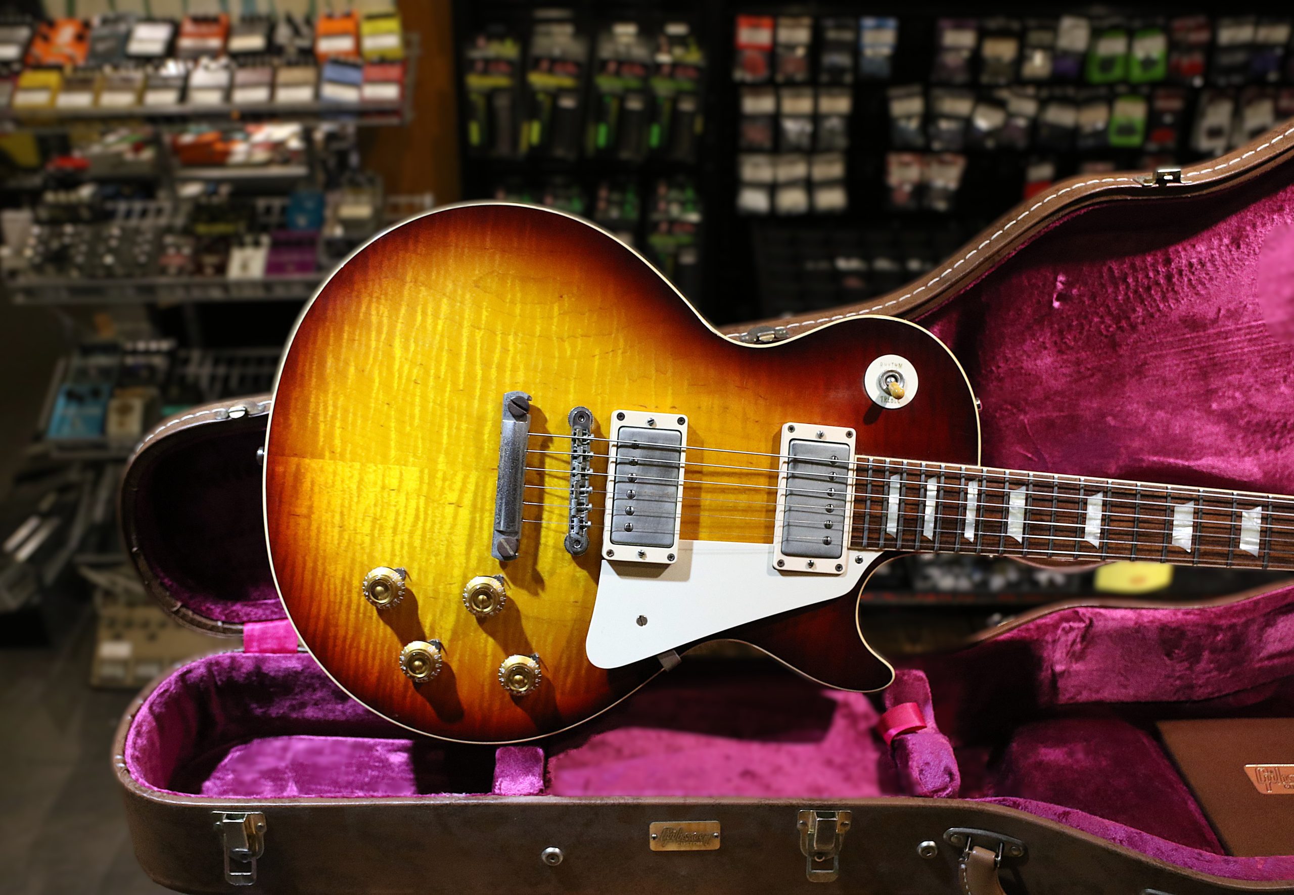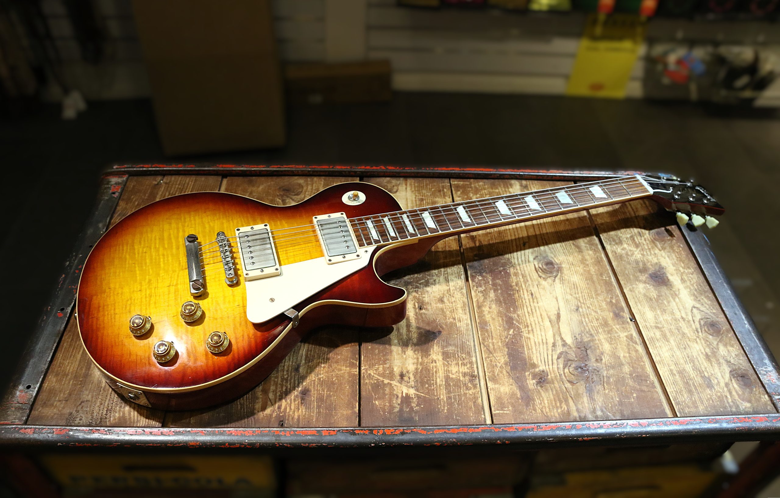 Nu har vi fått in en mycket fin Custom Shop Gibson Les Paul ´58 Reissue (R8) Flametop i färgen Bourbonburst.