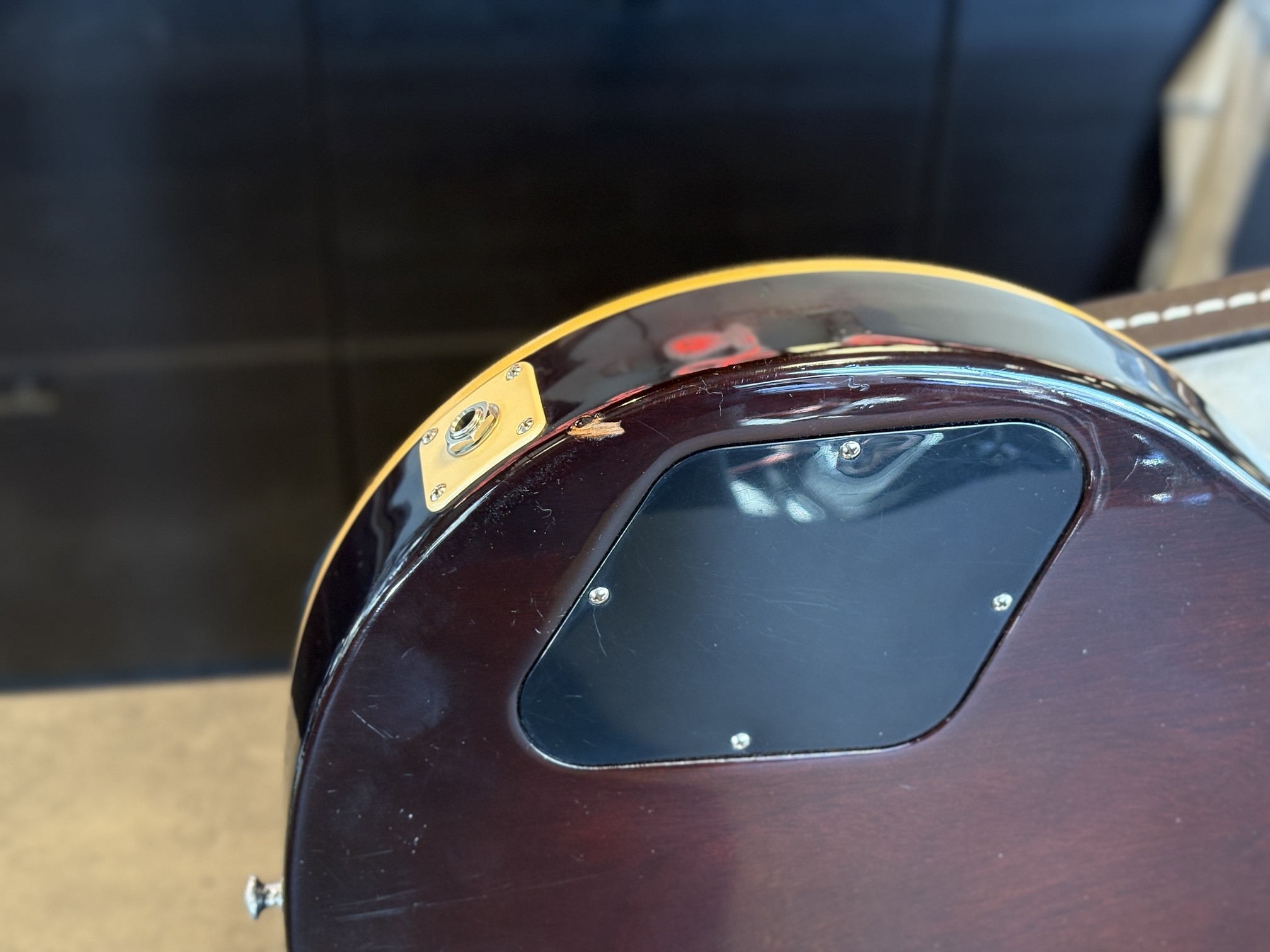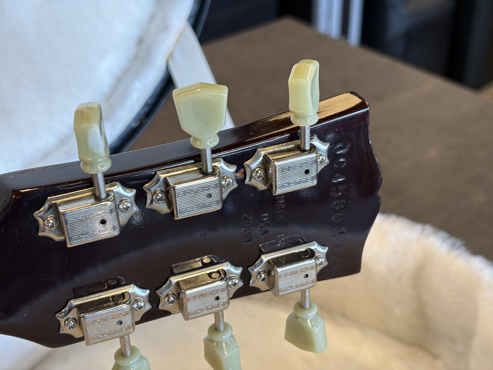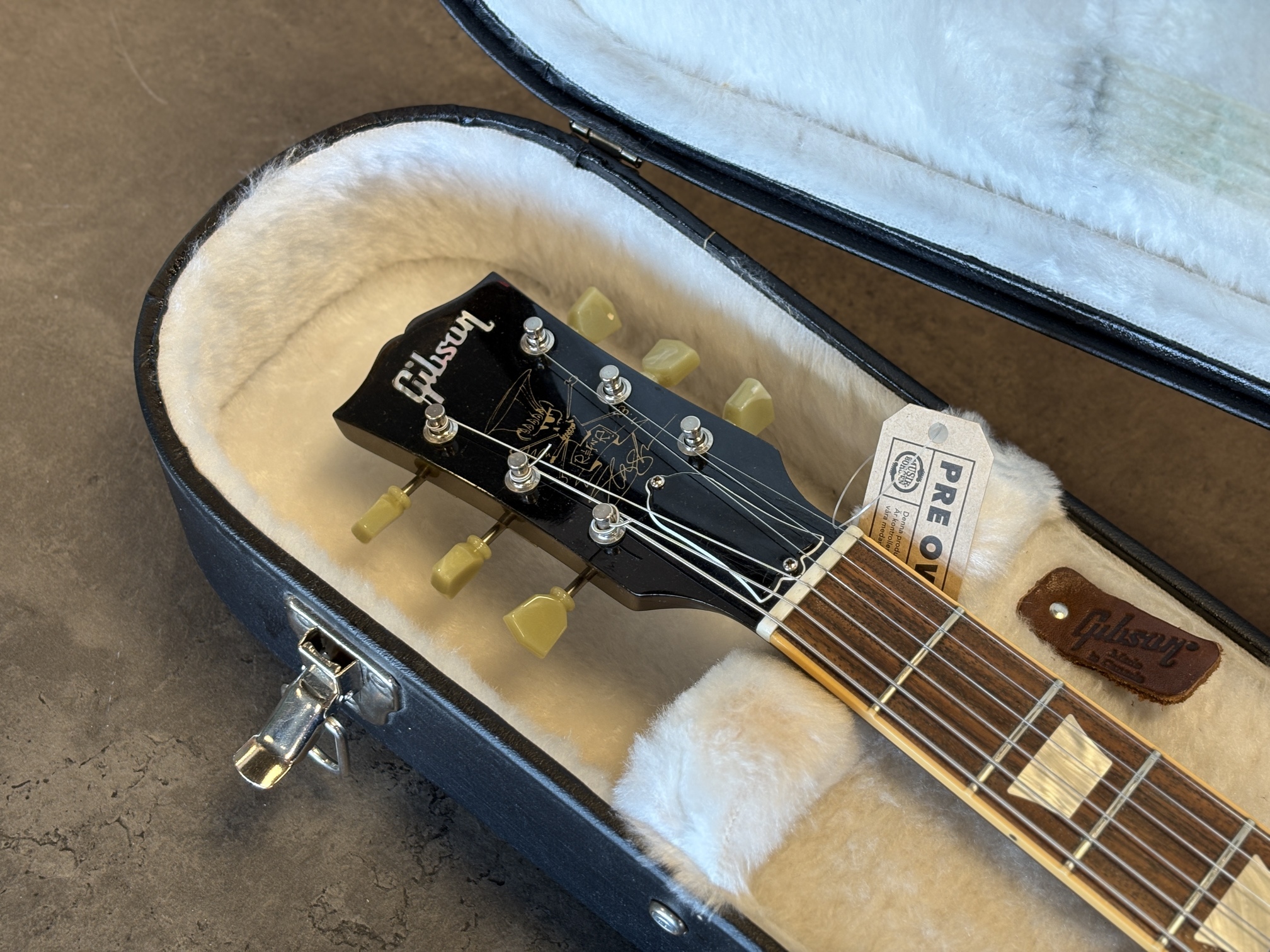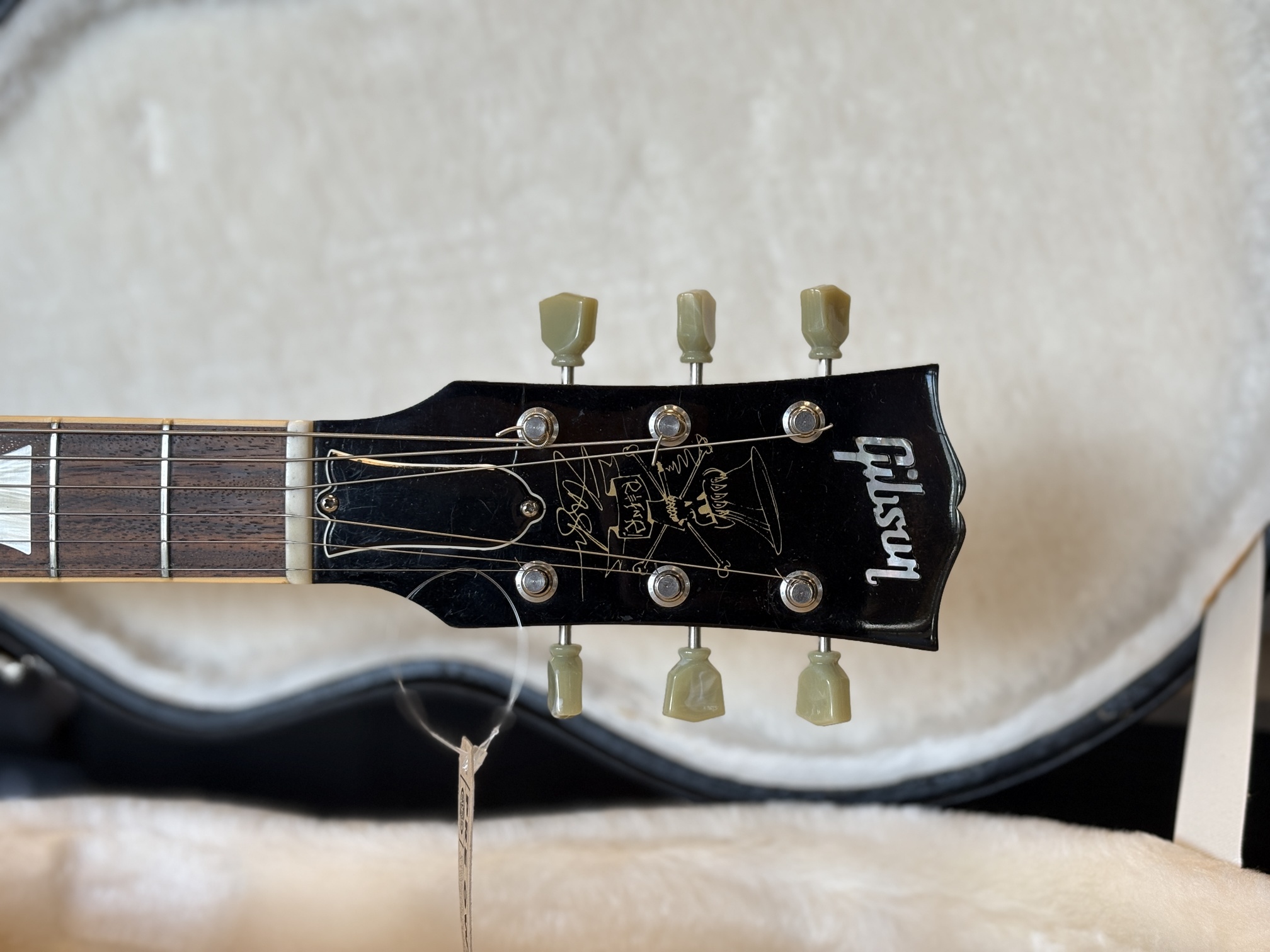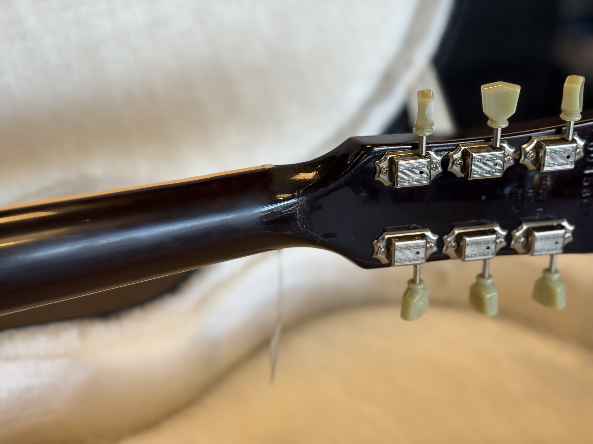 Gitarren har sedan tidigare ett lagat halsbrott.