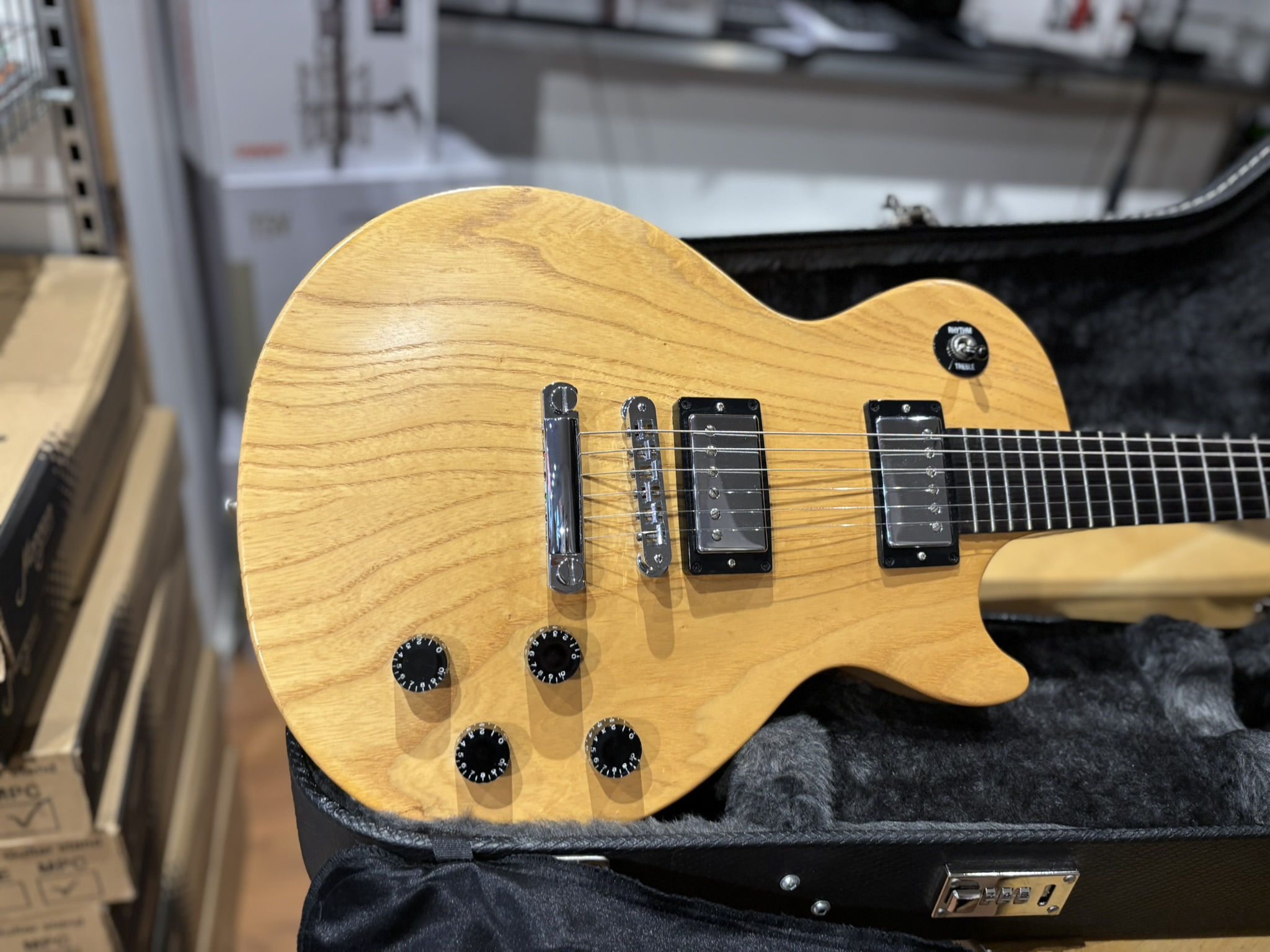 En ovanlig studio-modell med kropp av swamp ash som är något lättare än mahogny och ger en mer öppen och luftig ton.