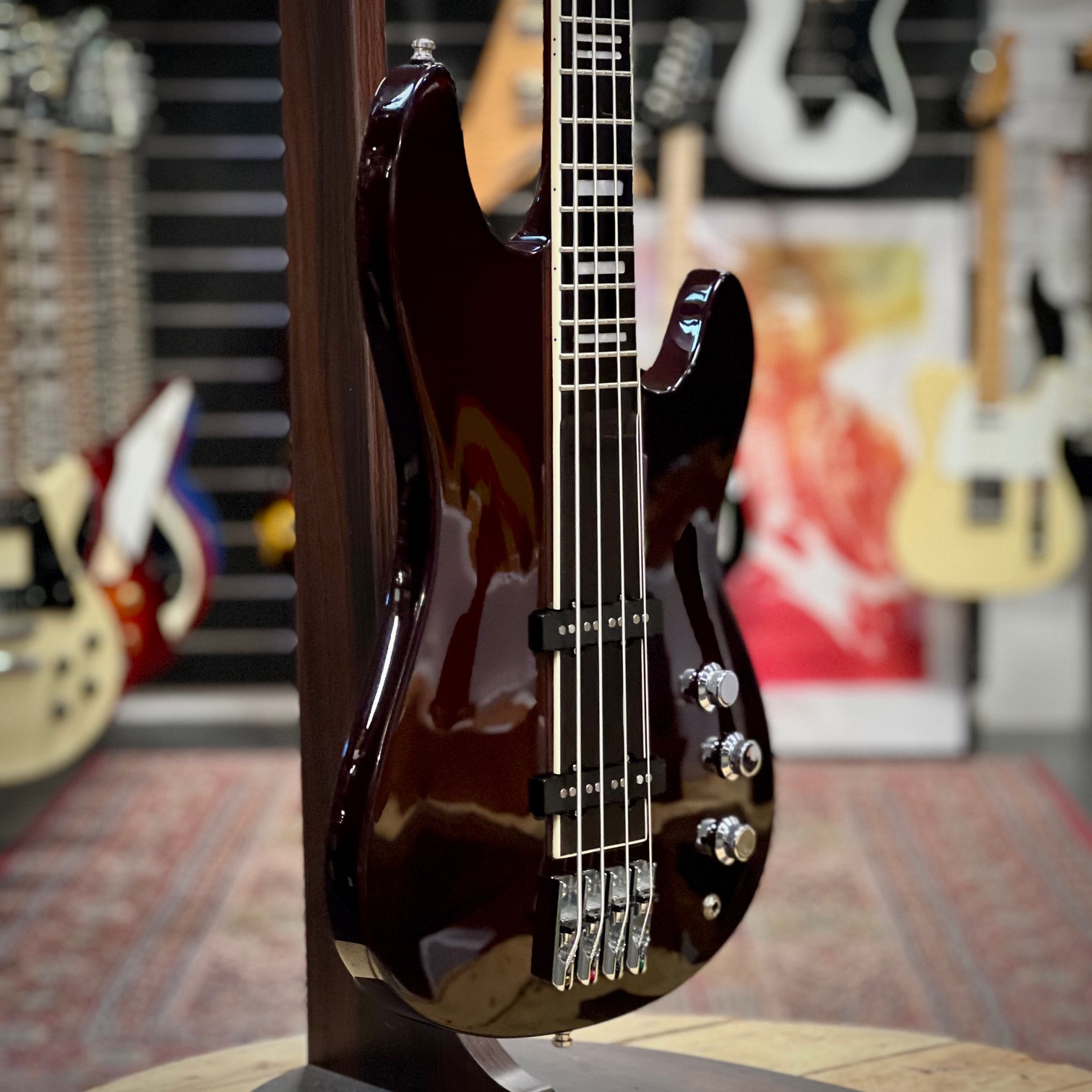 ABBA-basisten Rutger Gunnarsson var med och designade denna bas i slutet av 70-talet. Detta exemplar är en nyutgåva troligen tillverkad från ca 2020.