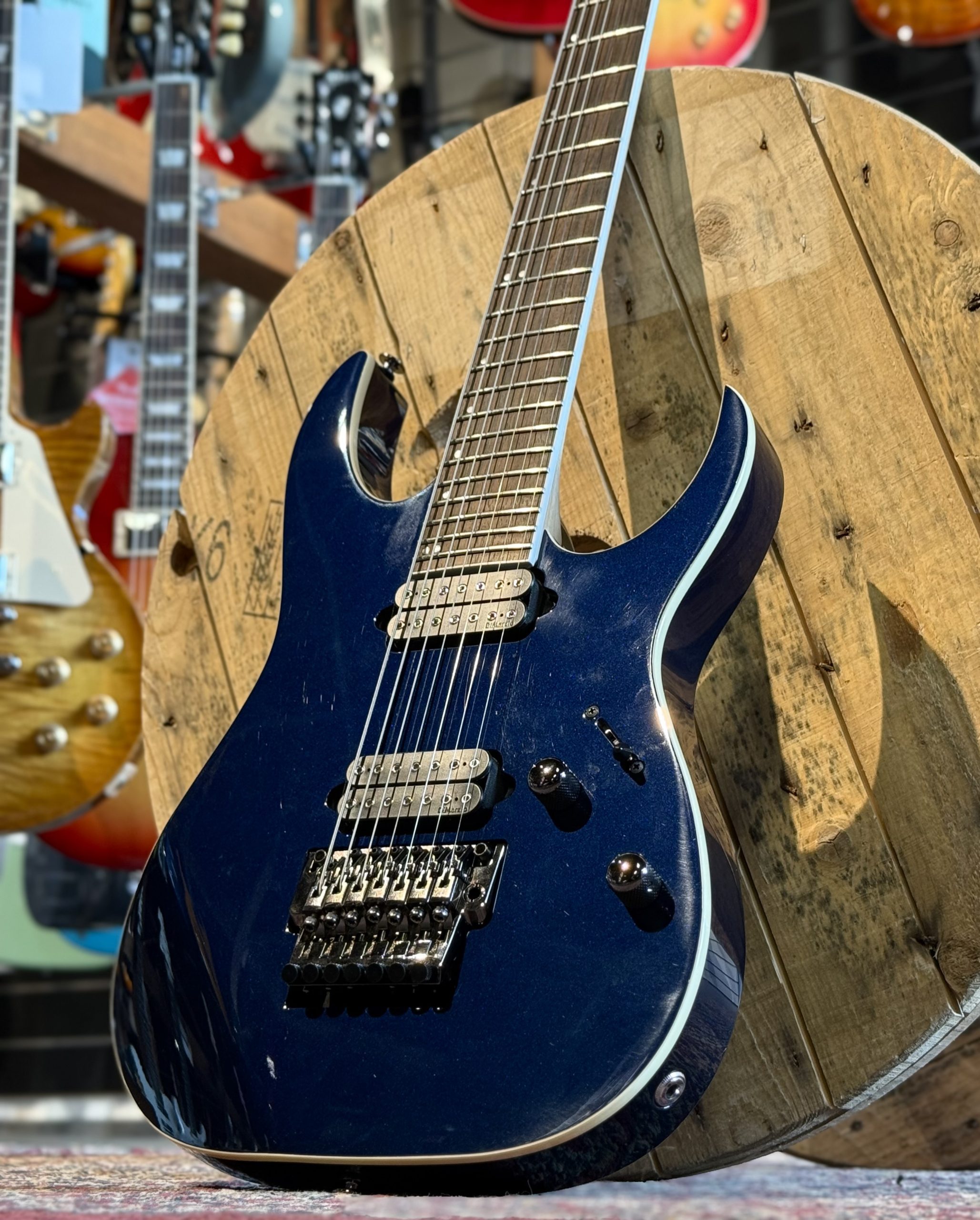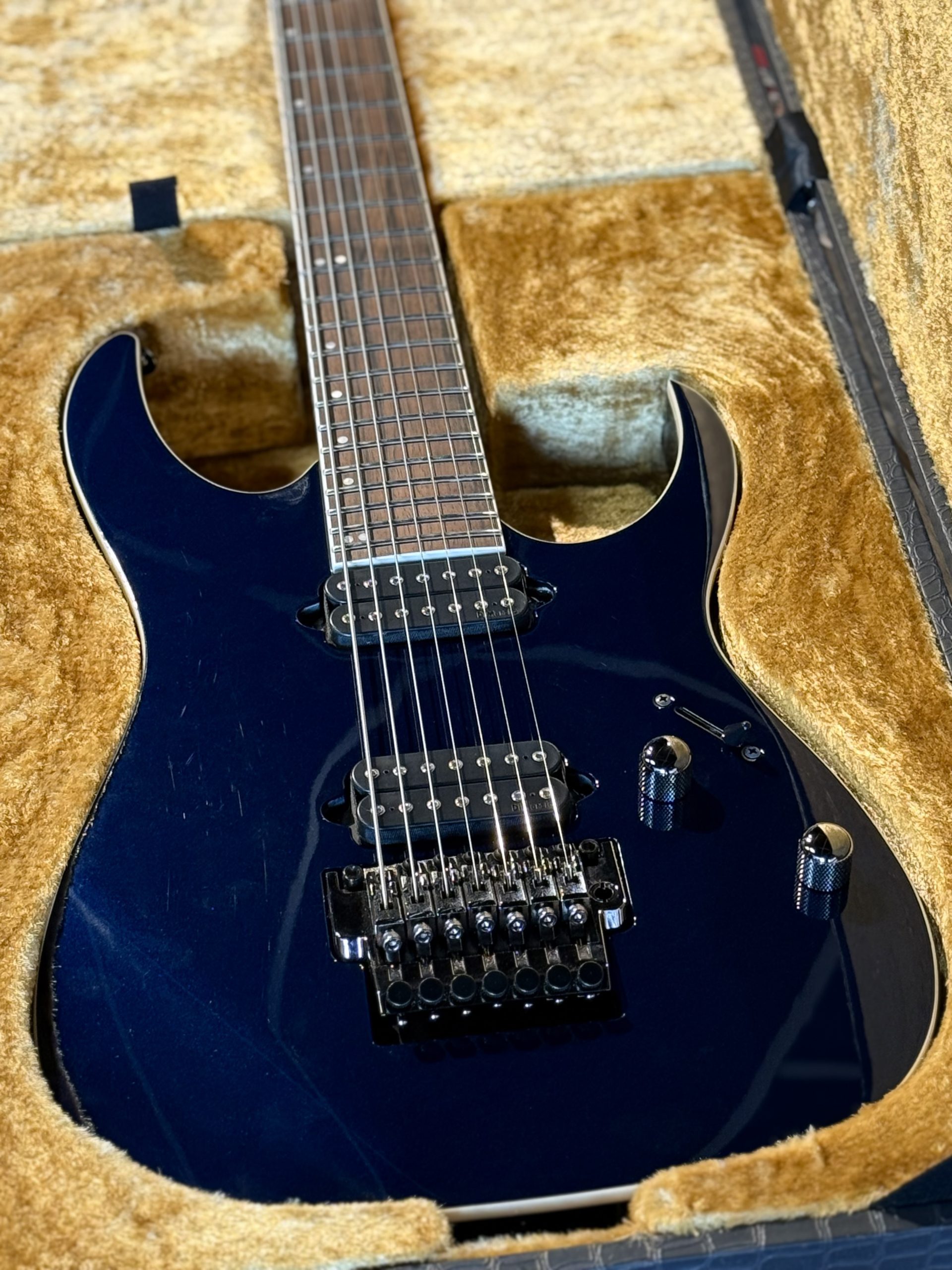 Ibanez Prestige RG2027XL 27" Baritone 7:a tillverkad i Japan. Dimarzio Fusion Edge 7 pickups och Lo-Pro Edge 7 bridge. I väldigt fint skick inkl hardcase.