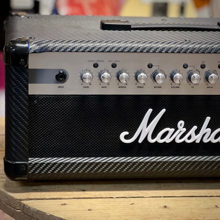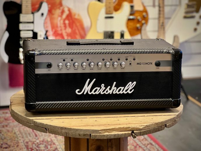 Marshall MG100HCFX är en 100-watts solid-state-förstärkartopp med klassiskt Marshall-sound och inbyggda effekter.