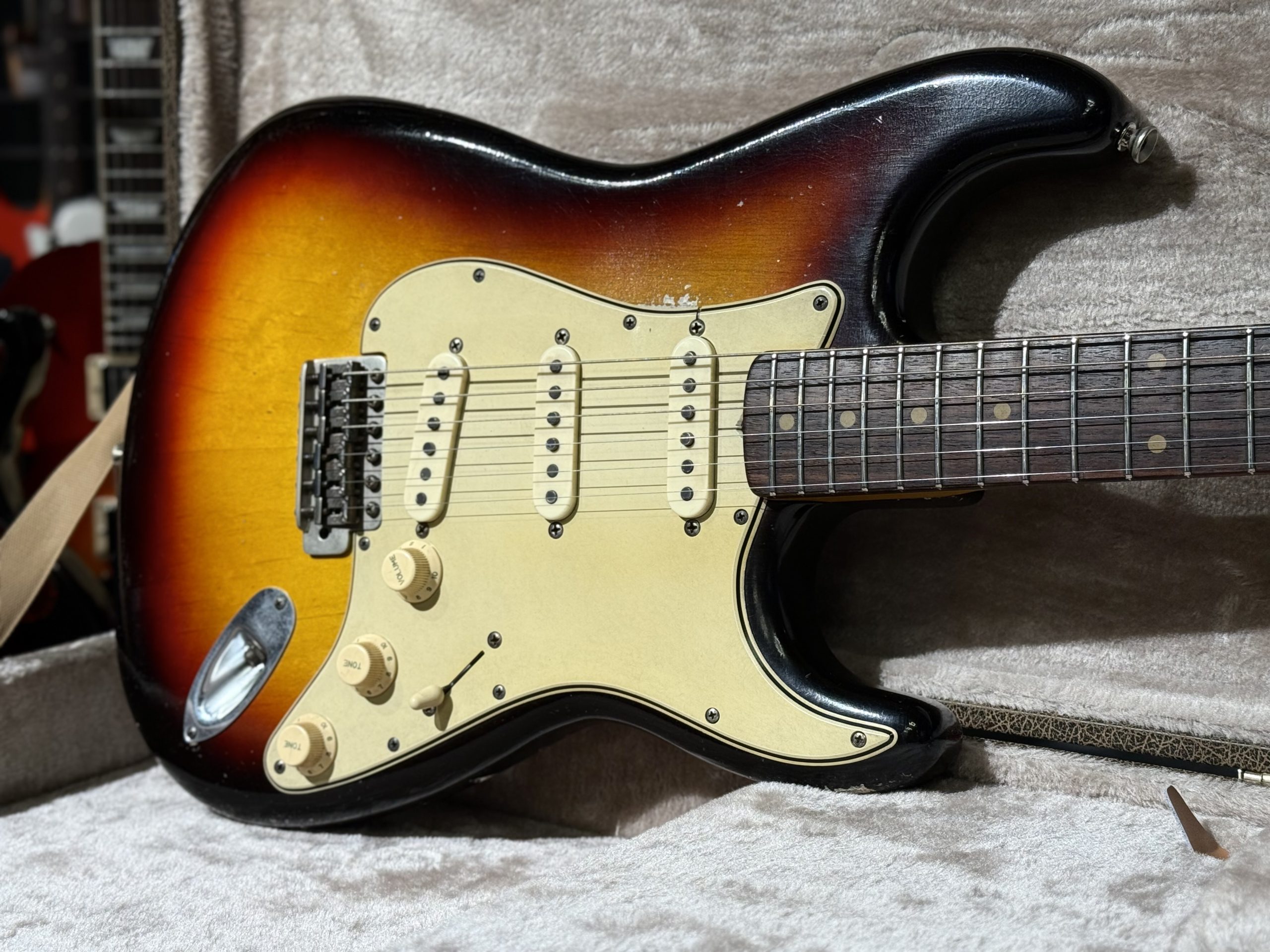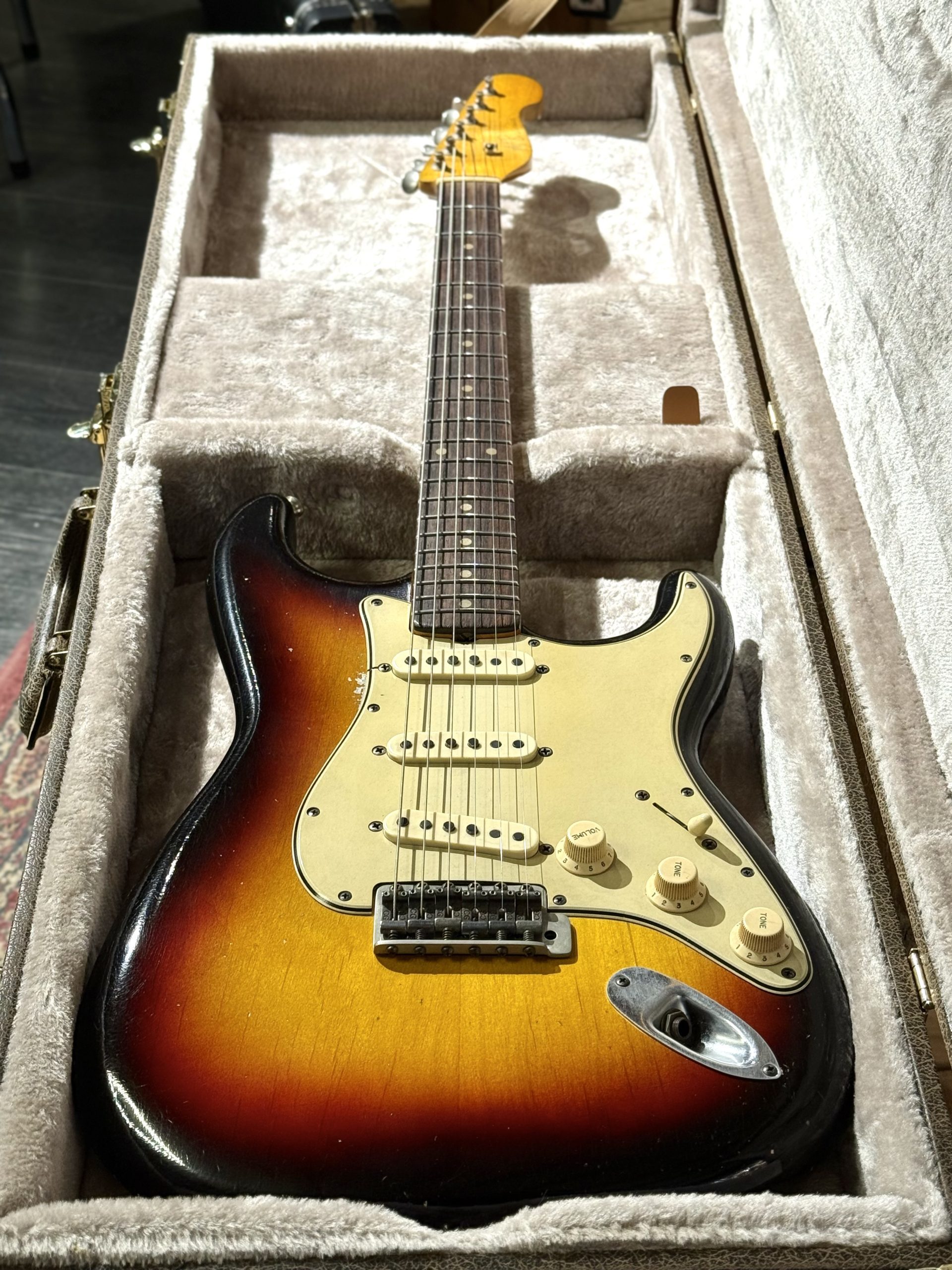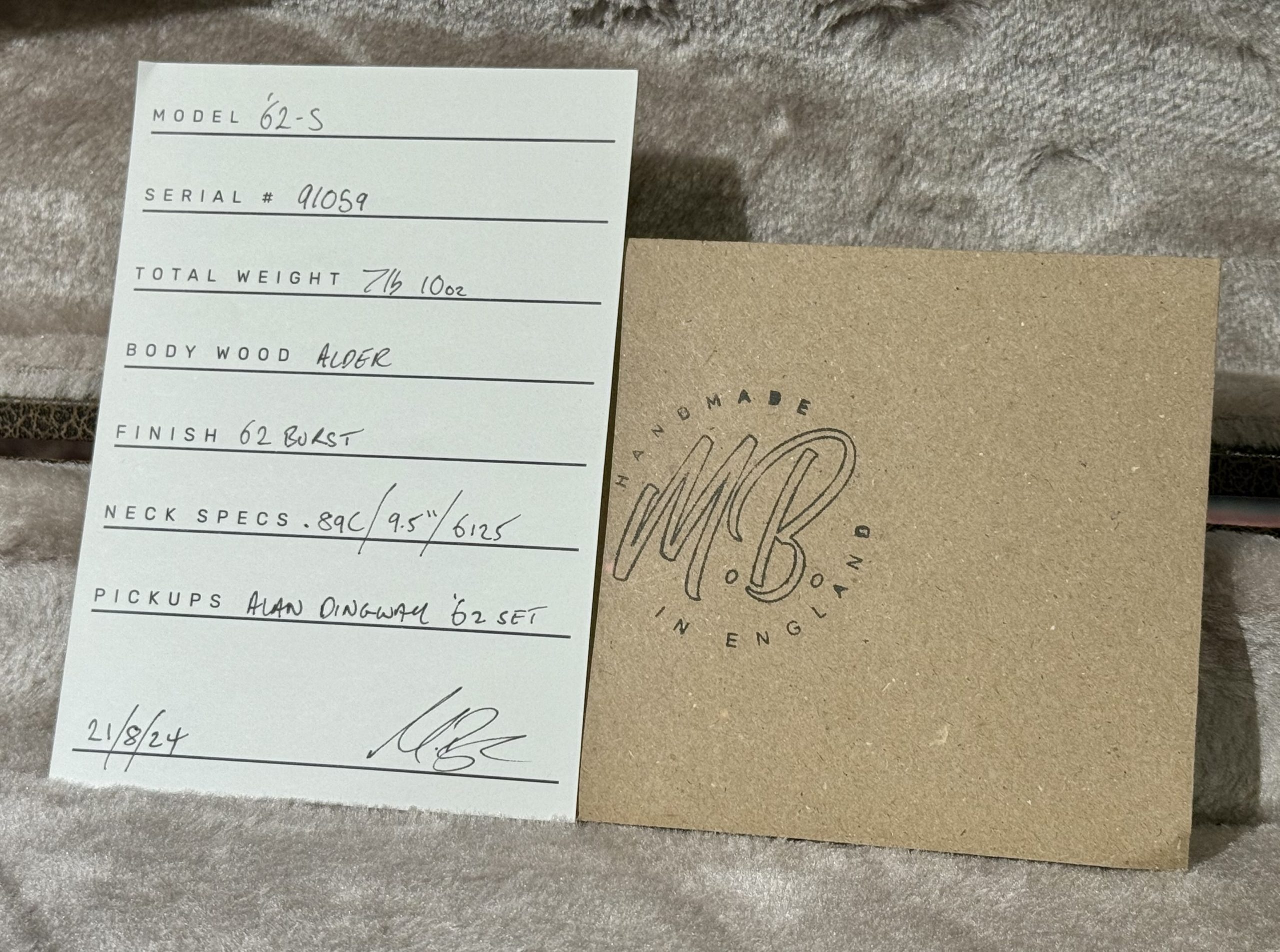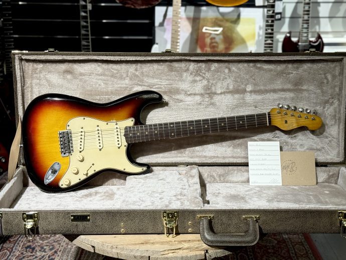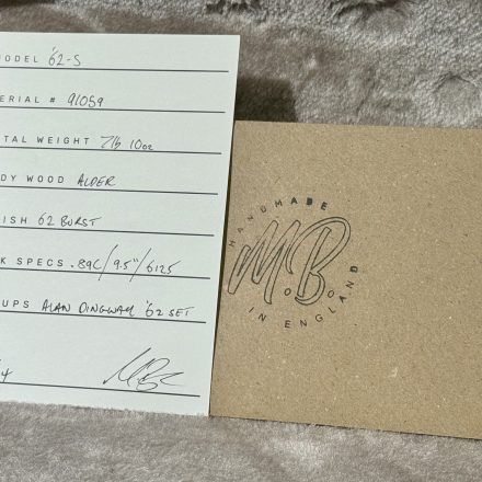 Handbyggd av högsta kvalitet av Mike Bowes i England. En ´62 inspirerad Stratocaster med 89C - FAT C hals som är inspirerad av en hals från en ´59 Les Paul. Jescar medium jumbo band. Alkropp. Alan Dingwall 62 pickups. Inkl hardcase.