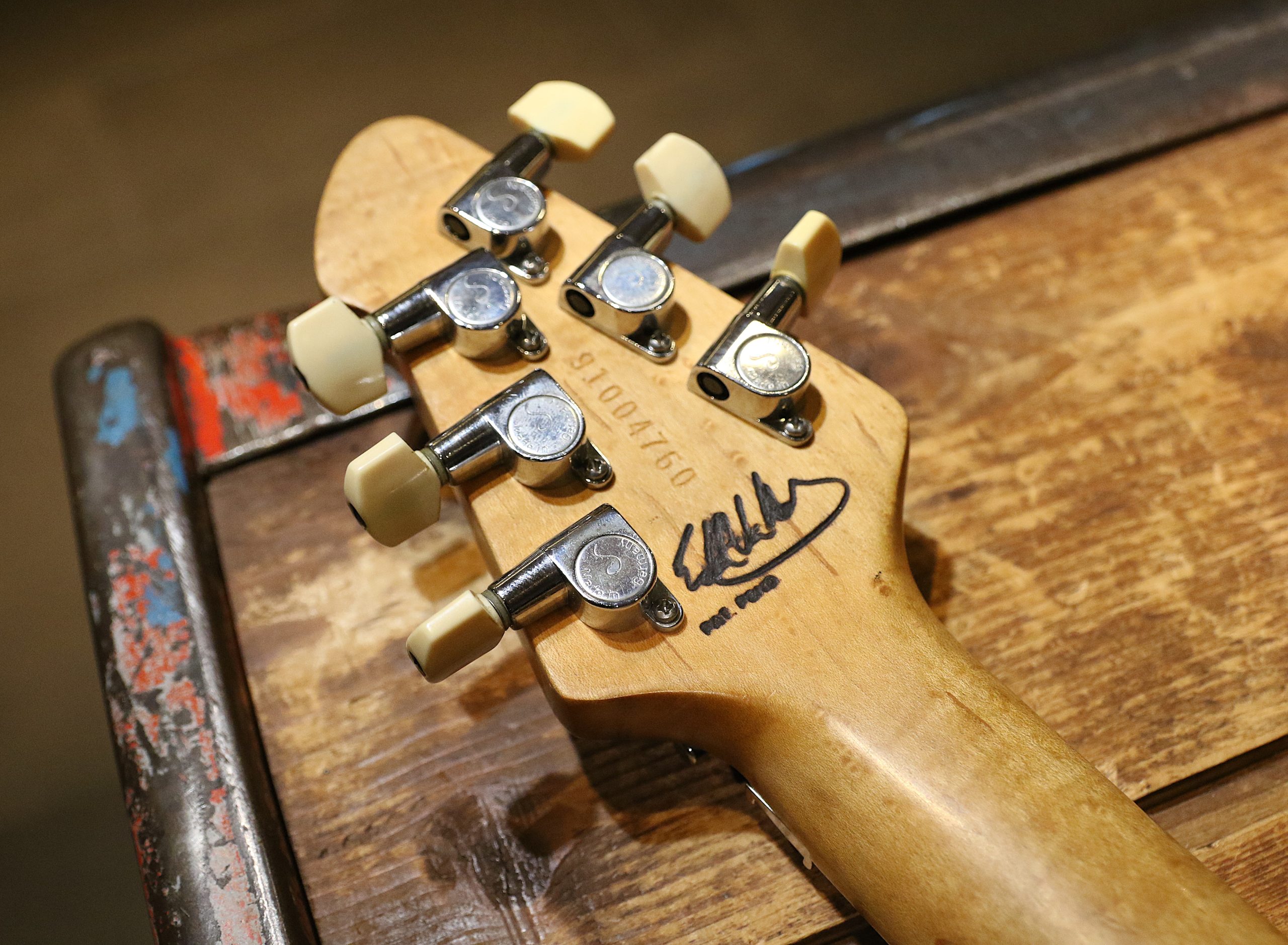 Nu har vi fått in en fin begagnad tidig Peavey Wolfgang med pat. pend. bak på huvudet.