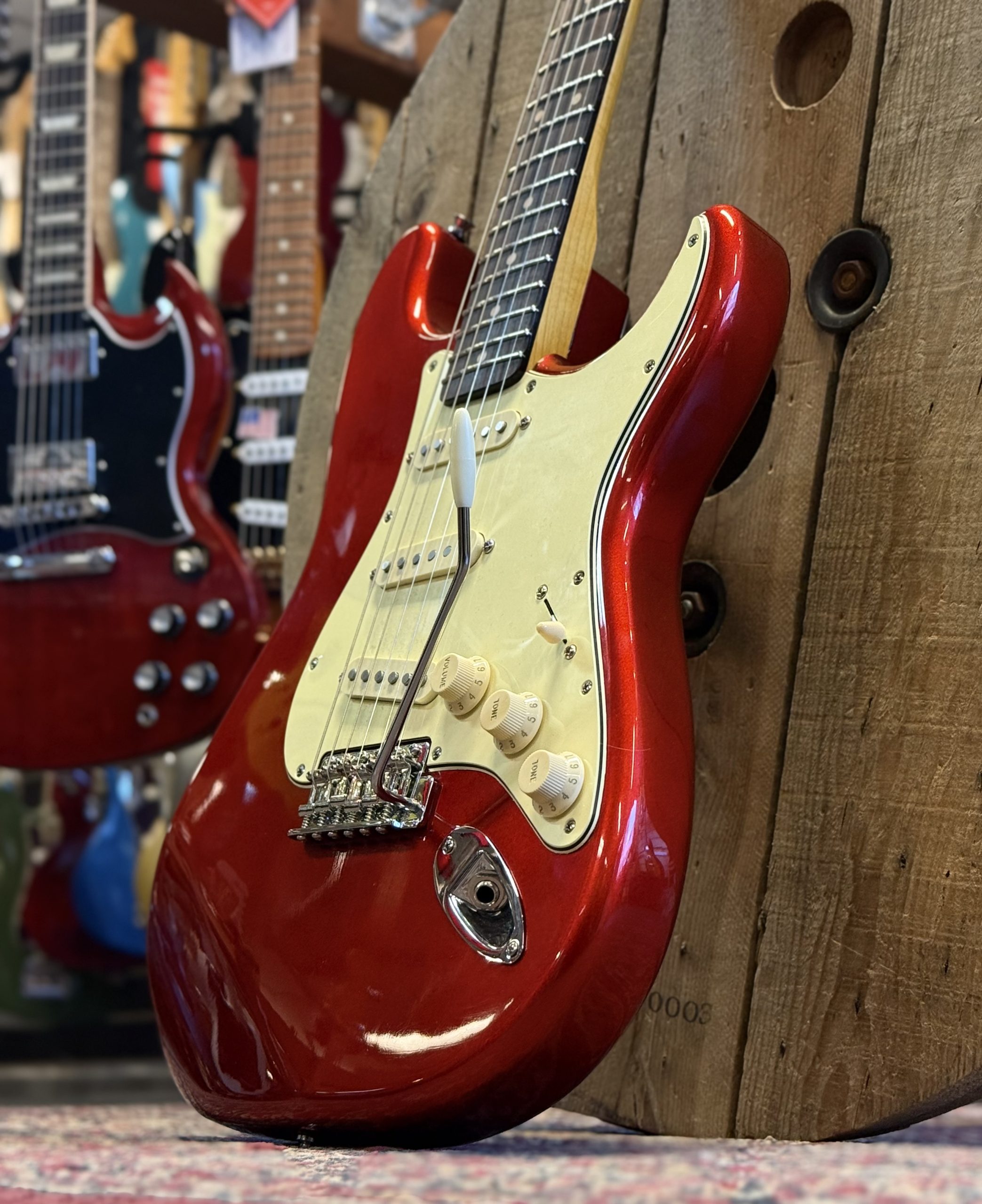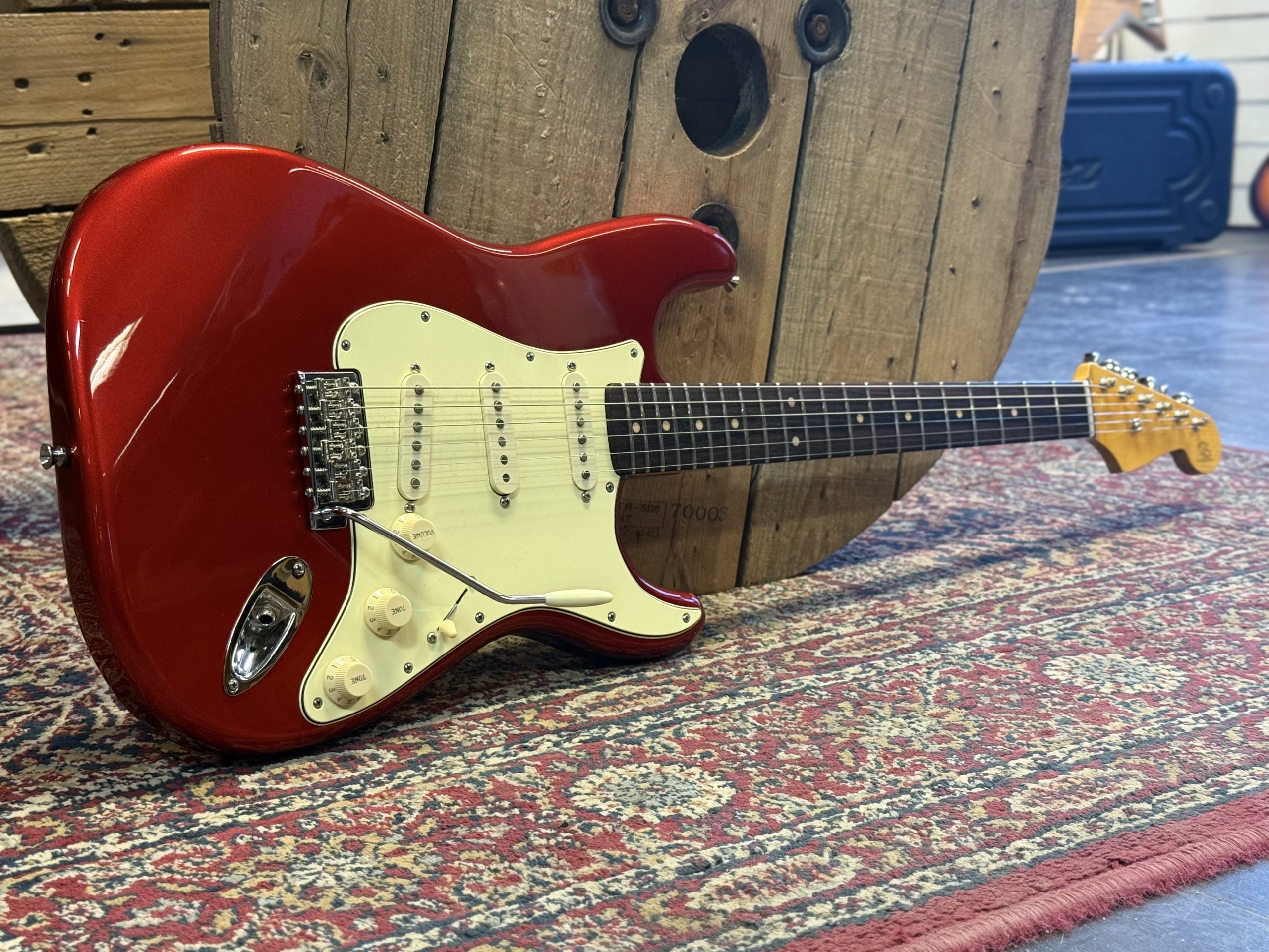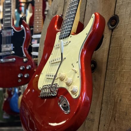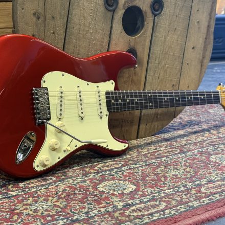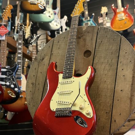 PS Guitarworks 60´s Stratocaster lackad i Candy Apple Red nitrocellulosa. 2 delad alkropp, tjock fin rosewoodgreppbräda . Customlindade pickups. Jumbo band. I kanonskick. Byggd 2025. Vikt 3590g