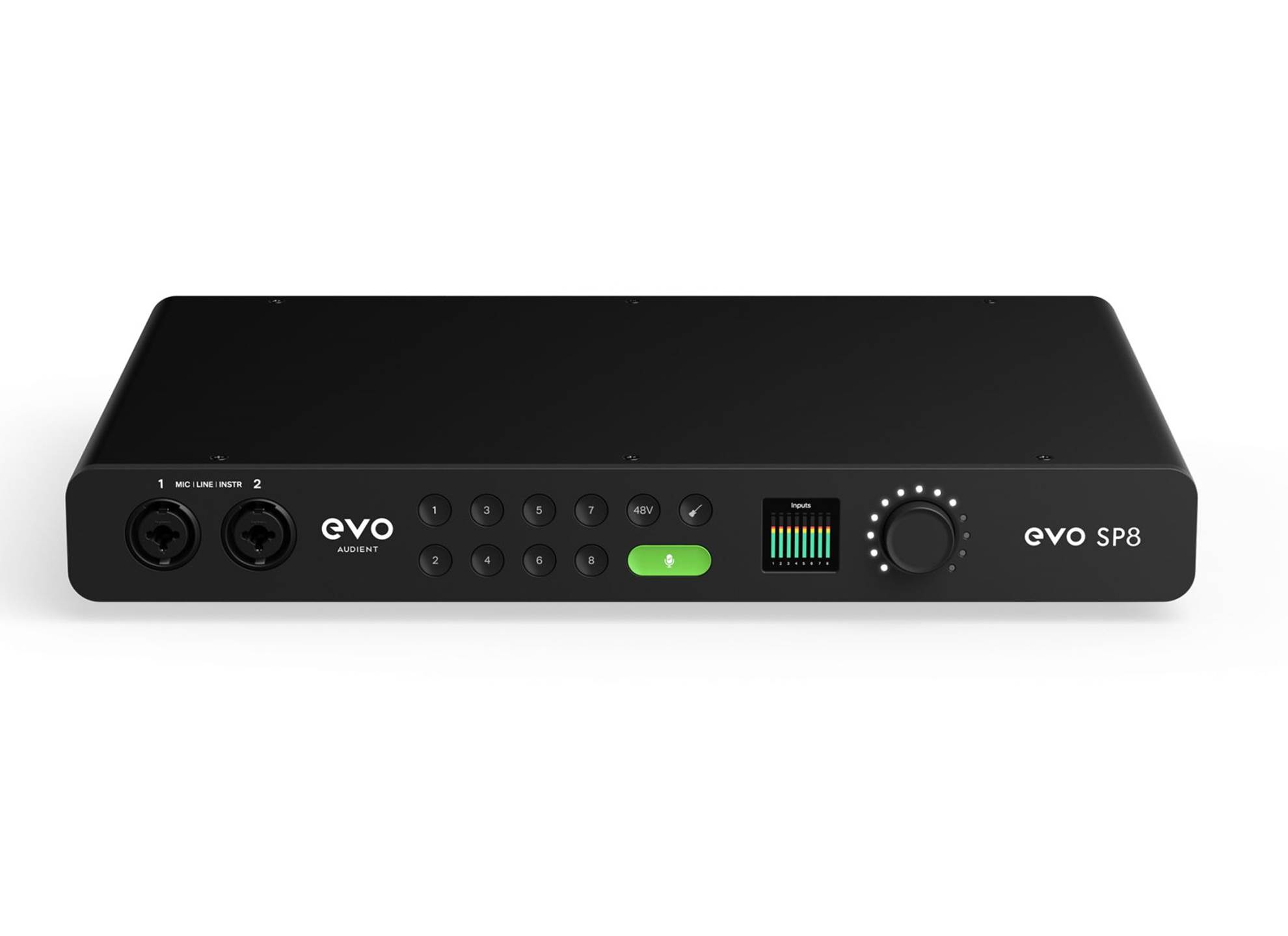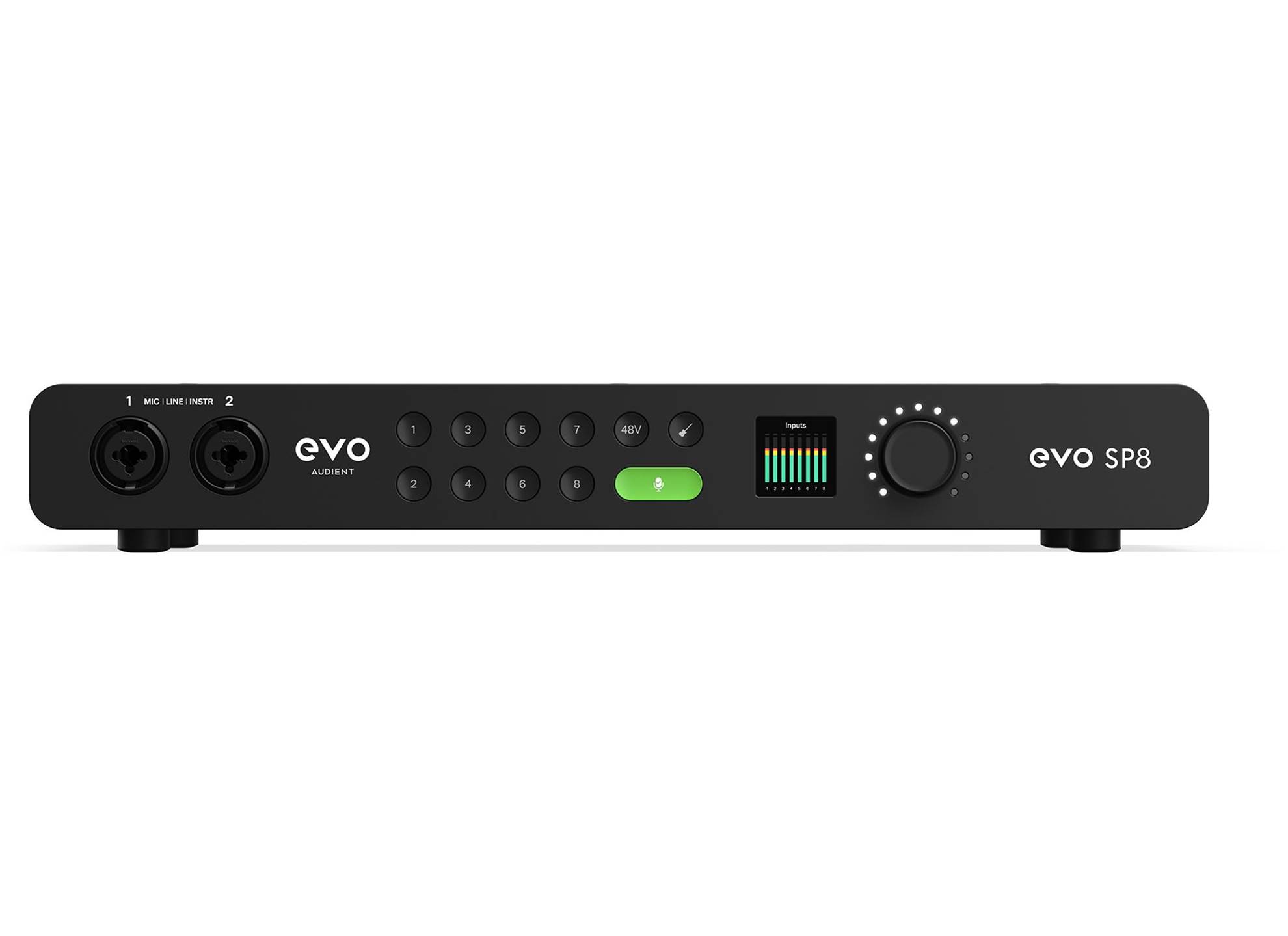 EVO Motion UI är designad för att förändra hur du arbetar med ditt ljudkort. För första gången visas all relevant information på en högupplöst färgskärm när du behöver den. EVO Motion UI är ett intelligent och användarvänligt sätt att spela in.