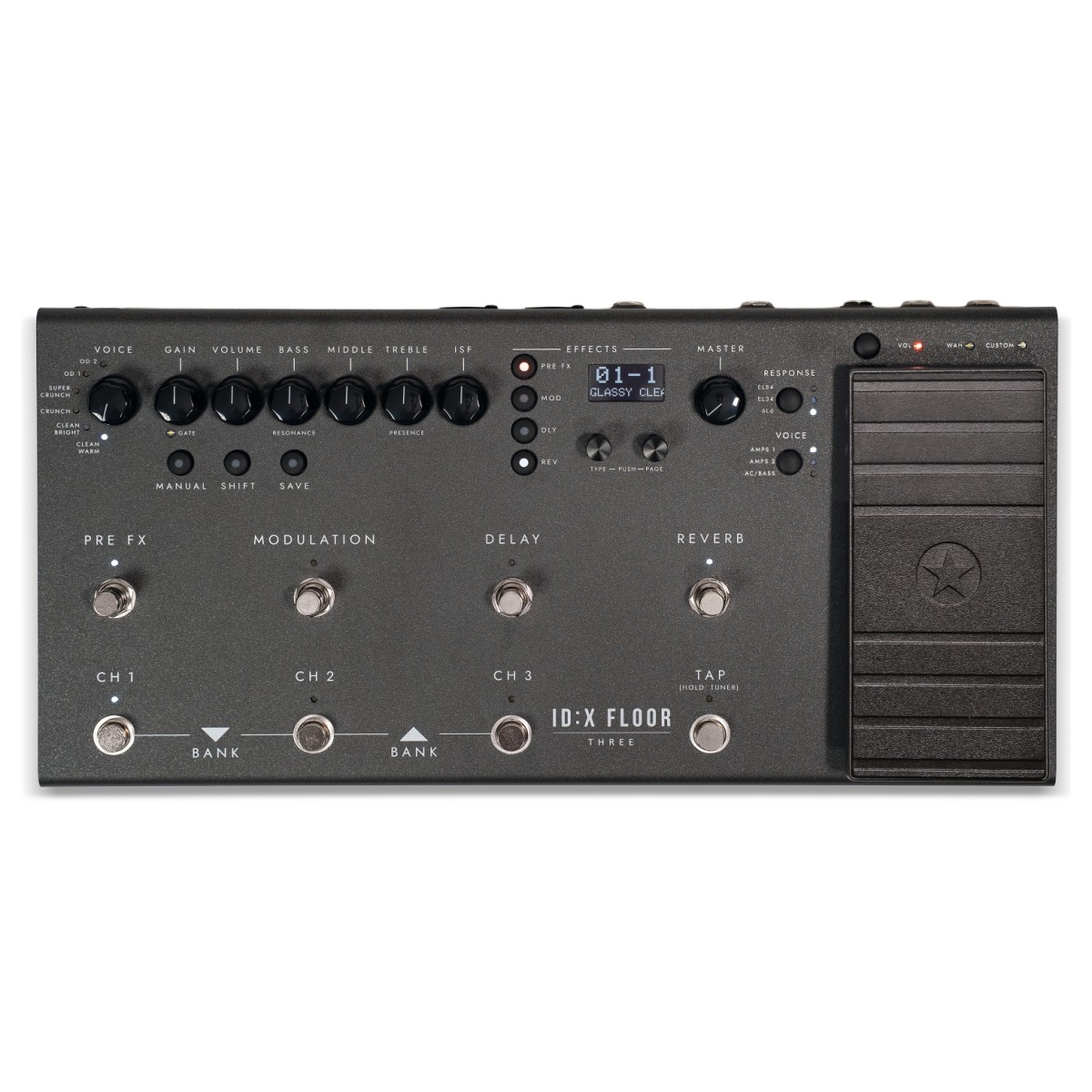 Blackstar IDX Floor 3 är flaggskeppsmodellen i ID:X Floor-serien och framtagen för gitarrister som kräver maximal kontroll, flexibilitet och autentisk förstärkarkänsla i ett pedalformat. Enheten bygger på Blackstars DSP-modellering på komponentnivå, där varje förstärkarsteg återskapas för att leverera naturlig dynamik, respons på anslag och interaktion med gitarrens volymkontroller.