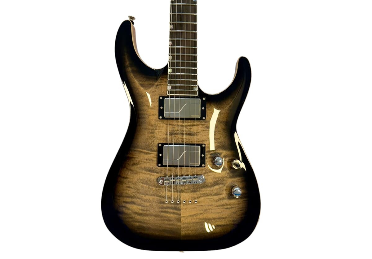 ESP USA Horizon-II FM i See Thru Black Sunburst är resultatet av hantverksmässig perfektion från ESP:s Custom Shop i Kalifornien. Denna modell är en flaggskeppsgitarr för seriösa musiker som kräver det yttersta i ton, spelbarhet och estetik. Med en topp i flammig lönn och en kropp i viktavlastad mahogny, erbjuder denna Horizon en bländande visuell närvaro som matchar dess tekniska prestanda.