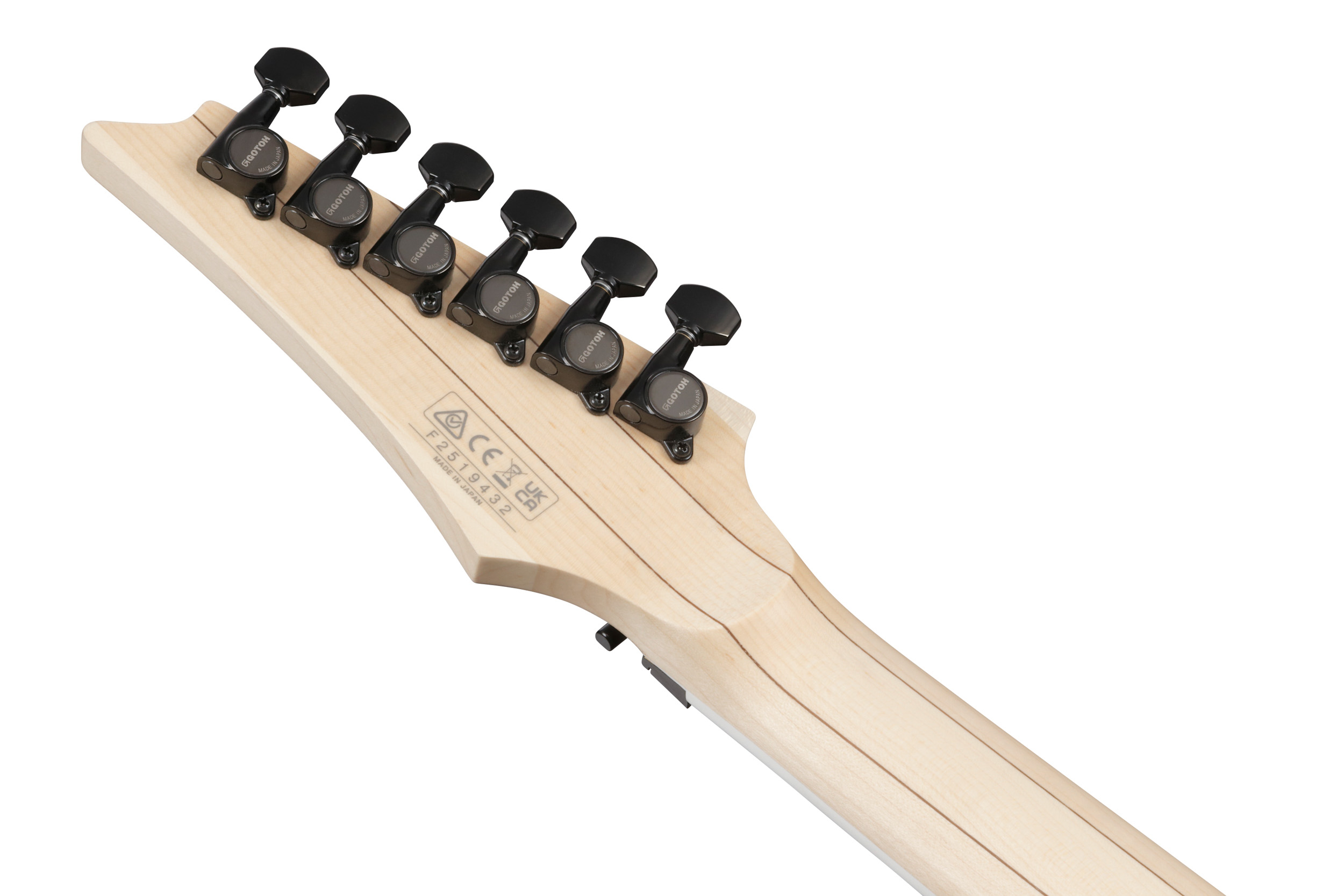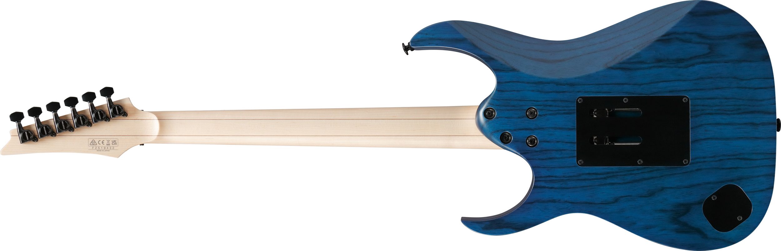 Kroppen i ask bidrar med tydlig attack, öppen karaktär och lång sustain, vilket ger ett balanserat ljud som fungerar lika bra för högdistade partier som för mer dynamiska och artikulerade spelstilar. Den klassiska RG-kroppsformen ger dessutom obehindrad åtkomst till de högsta banden.