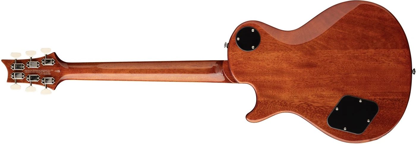 Kroppen i mahogny tillsammans med en välvd lönntopp ger en balanserad ton med tydlig attack, varm botten och rik sustain. Halsen i mahogny är utformad med PRS Pattern Vintage-profil, vilket ger en stabil och bekväm känsla som passar både rytmspel och lead. Greppbrädan i Rosewood bidrar med ytterligare värme och respons, samtidigt som den erbjuder en smidig spelupplevelse över hela registret.