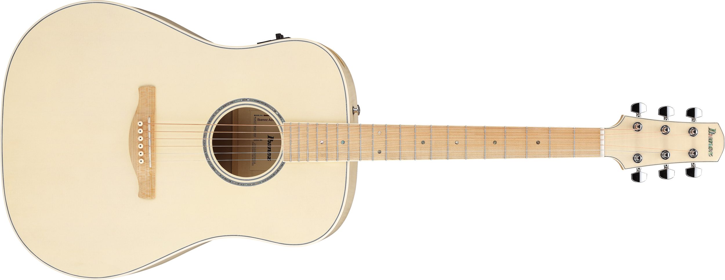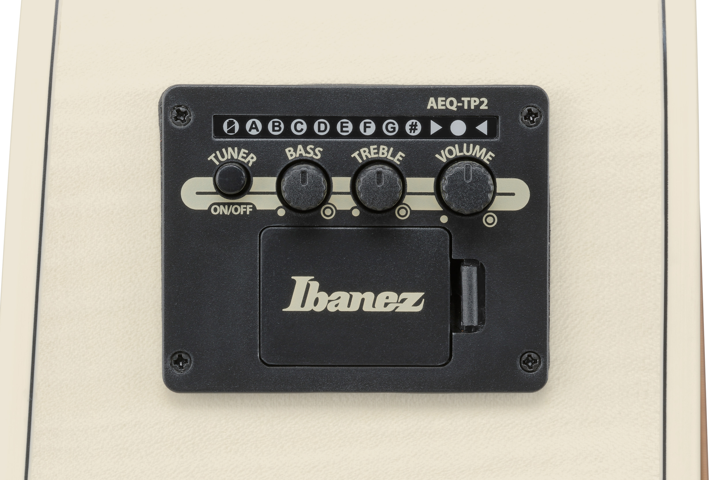 För förstärkt användning är AAD77M1E utrustad med Ibanez T-bar undersaddle-pickup och AEQ-TP2-preamp med inbyggd stämapparat och 2-bands EQ. Med både balanserad XLR-utgång och 1/4″-utgång är den väl anpassad för scen, studio och PA-anslutning. Den öppna Open Pore Antique White-finishen ger ett modernt, elegant uttryck som kompletterar gitarrens avancerade konstruktion.