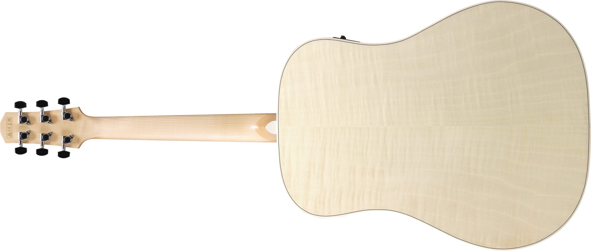 Den massiva toppen i Sitka-gran levererar snabb respons, hög dynamik och ett brett frekvensomfång, medan flammig lönn i sidor och botten bidrar med fokuserad attack, tydliga övertoner och ett distinkt, definierat sound. Kombinationen ger ett balanserat och kraftfullt ljud som fungerar lika bra för ackordspel som för detaljerat fingerstyle-spel.