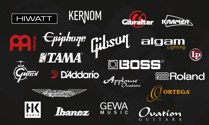 I tältet kommer vi att ha produkter från Roland, BOSS, Gibson, Epiphone, Ibanez, Tama, D'addario, Kramer och många fler.